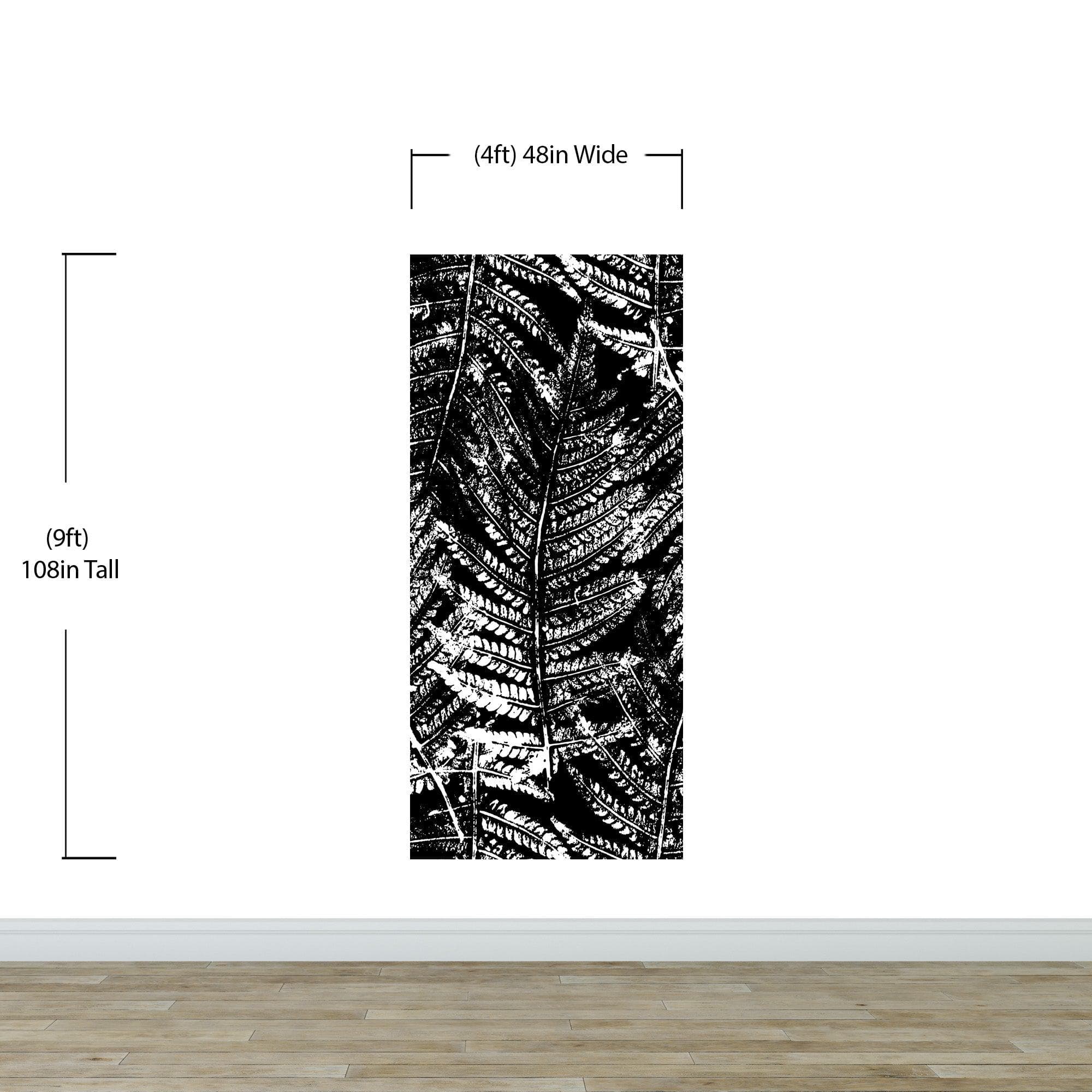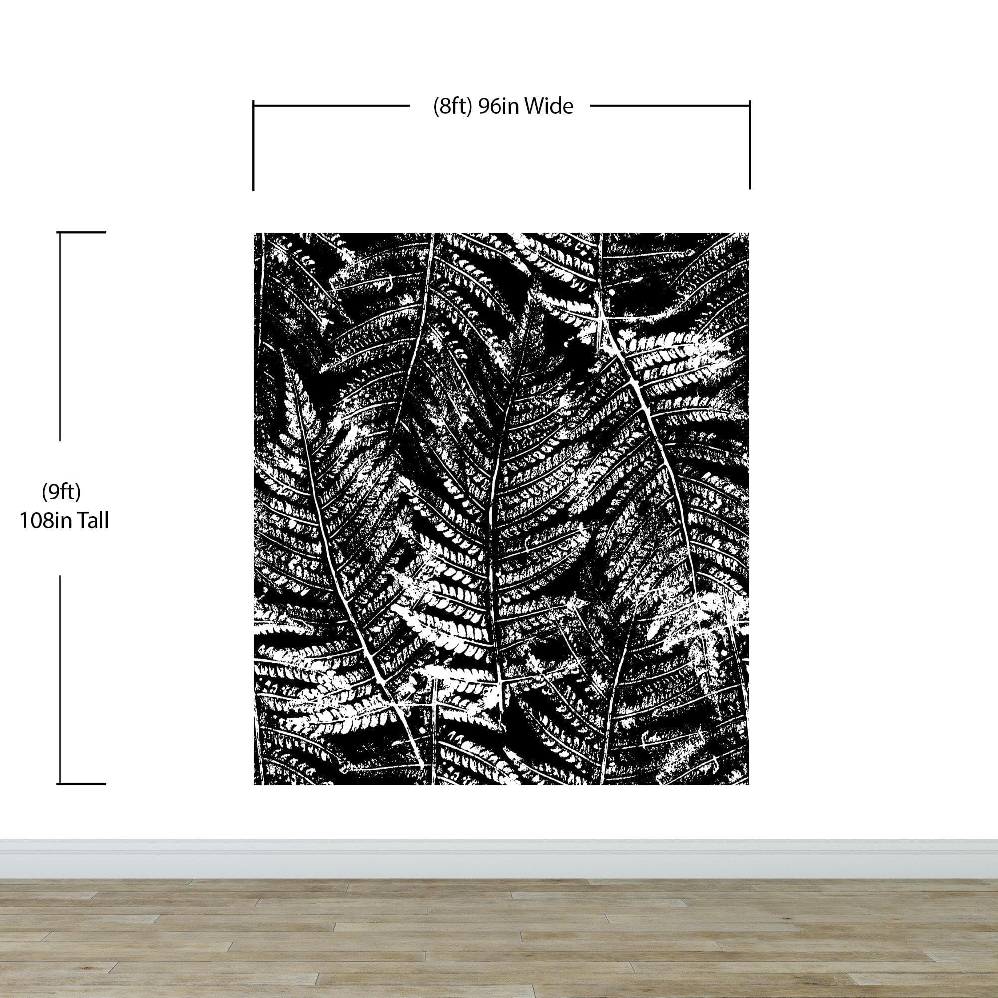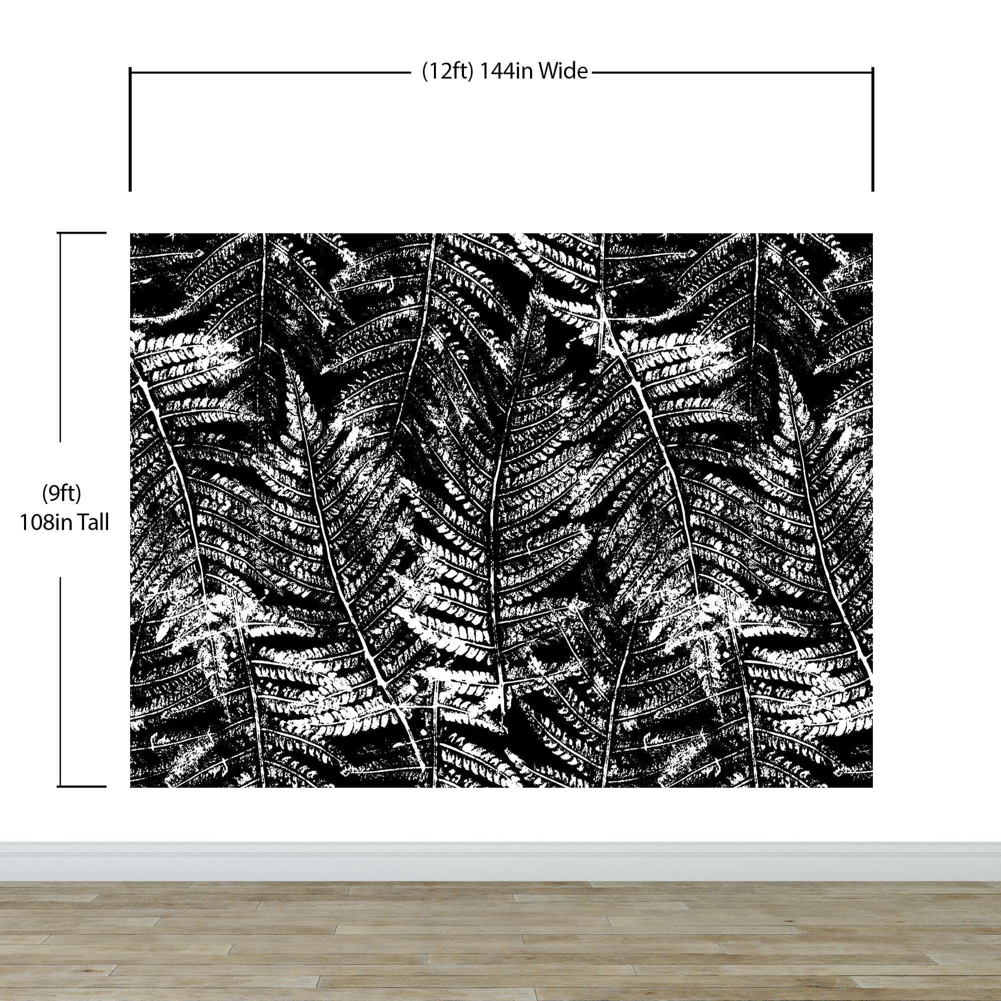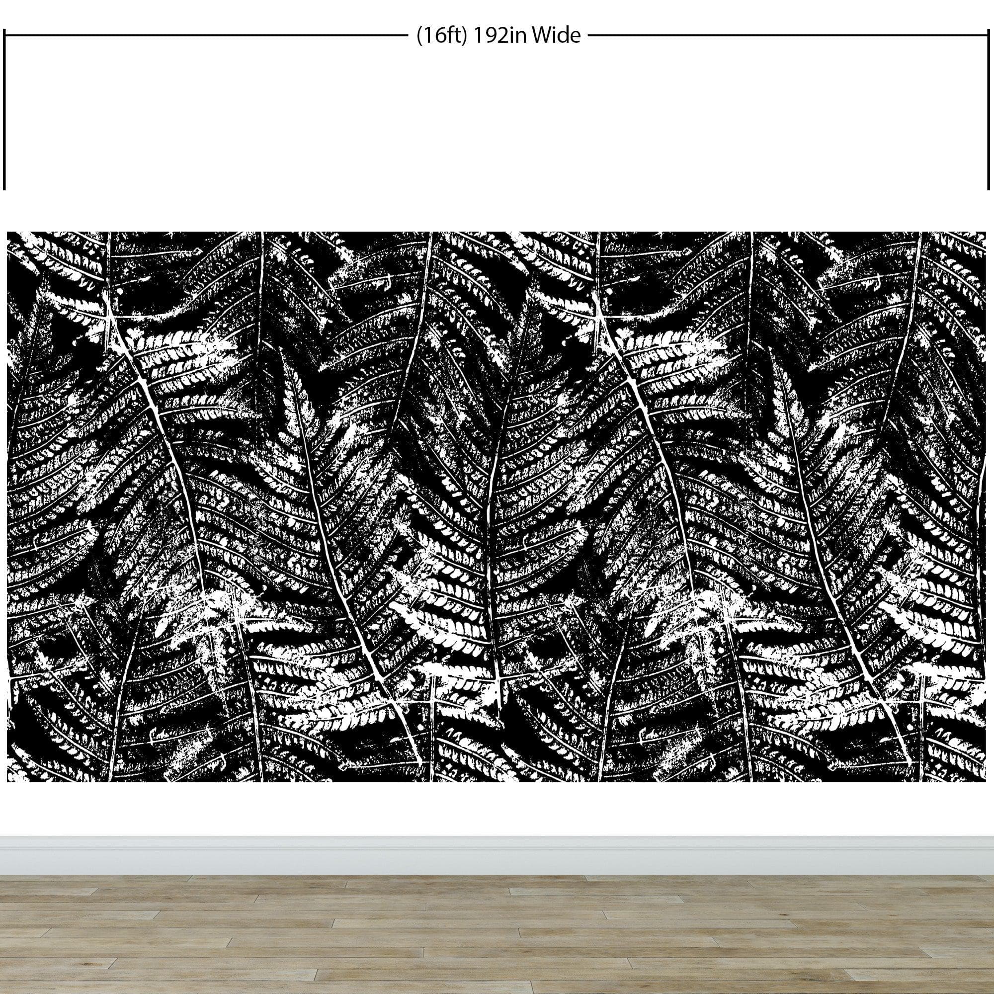 Black and White Fern Botanical Wallpaper. Peel and Stick Mural. #6579