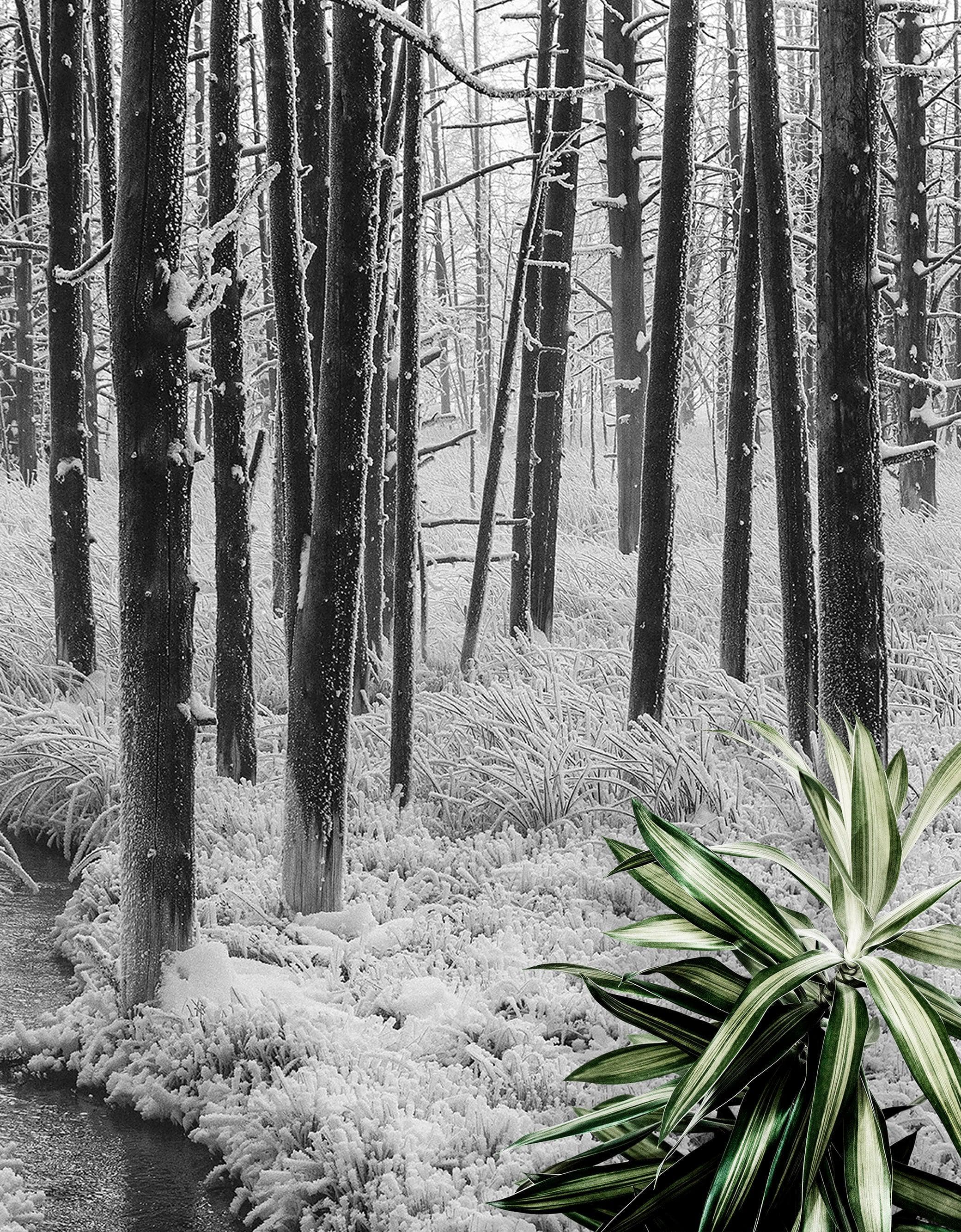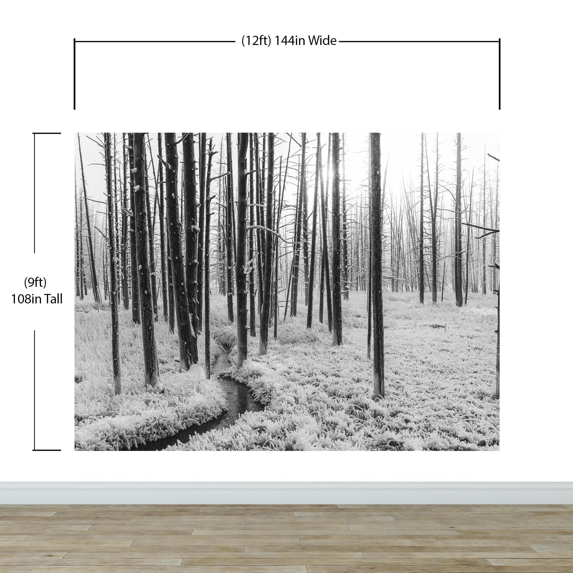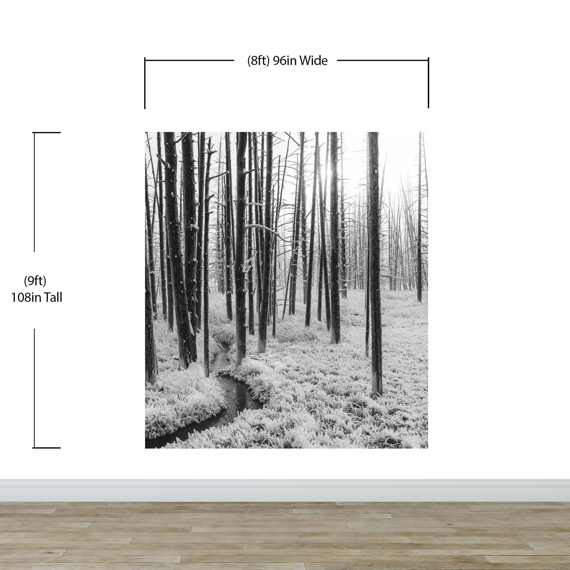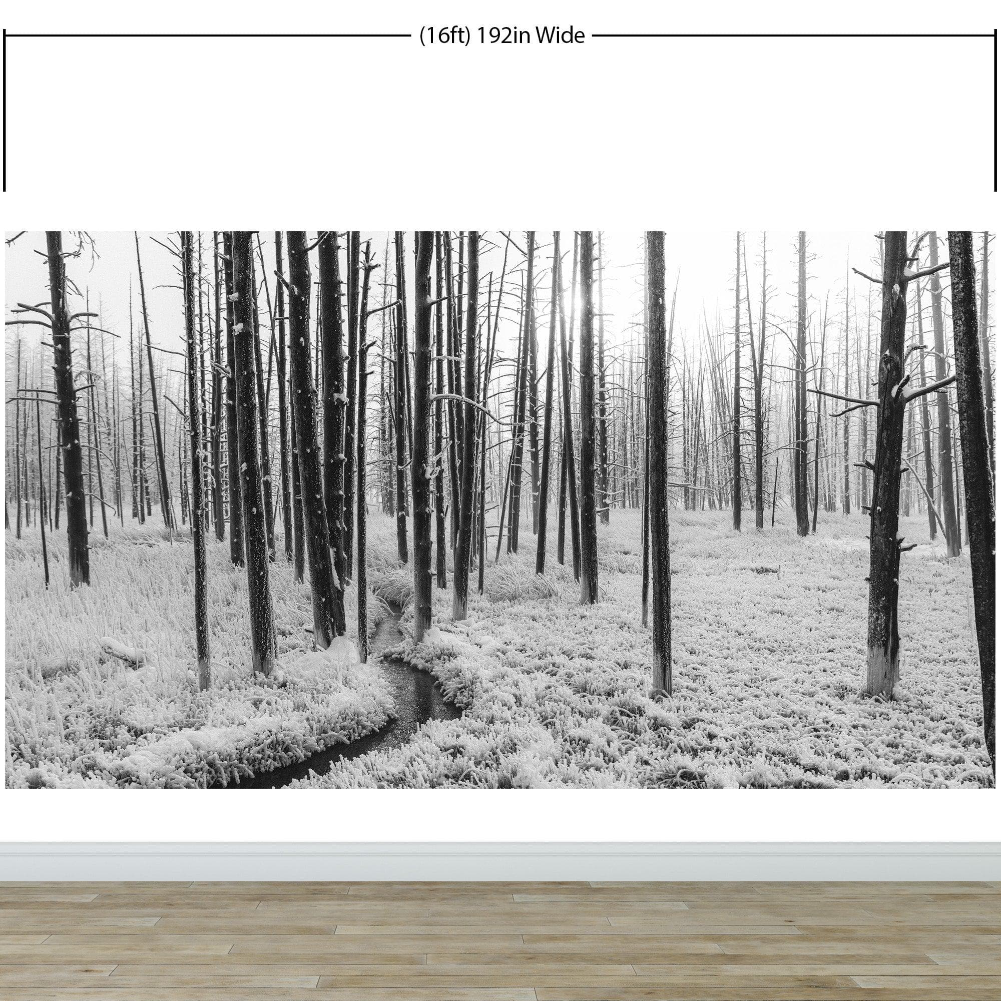 Black and White Forest Landscape Wall Mural. Peel and Stick Wallpaper. #6365