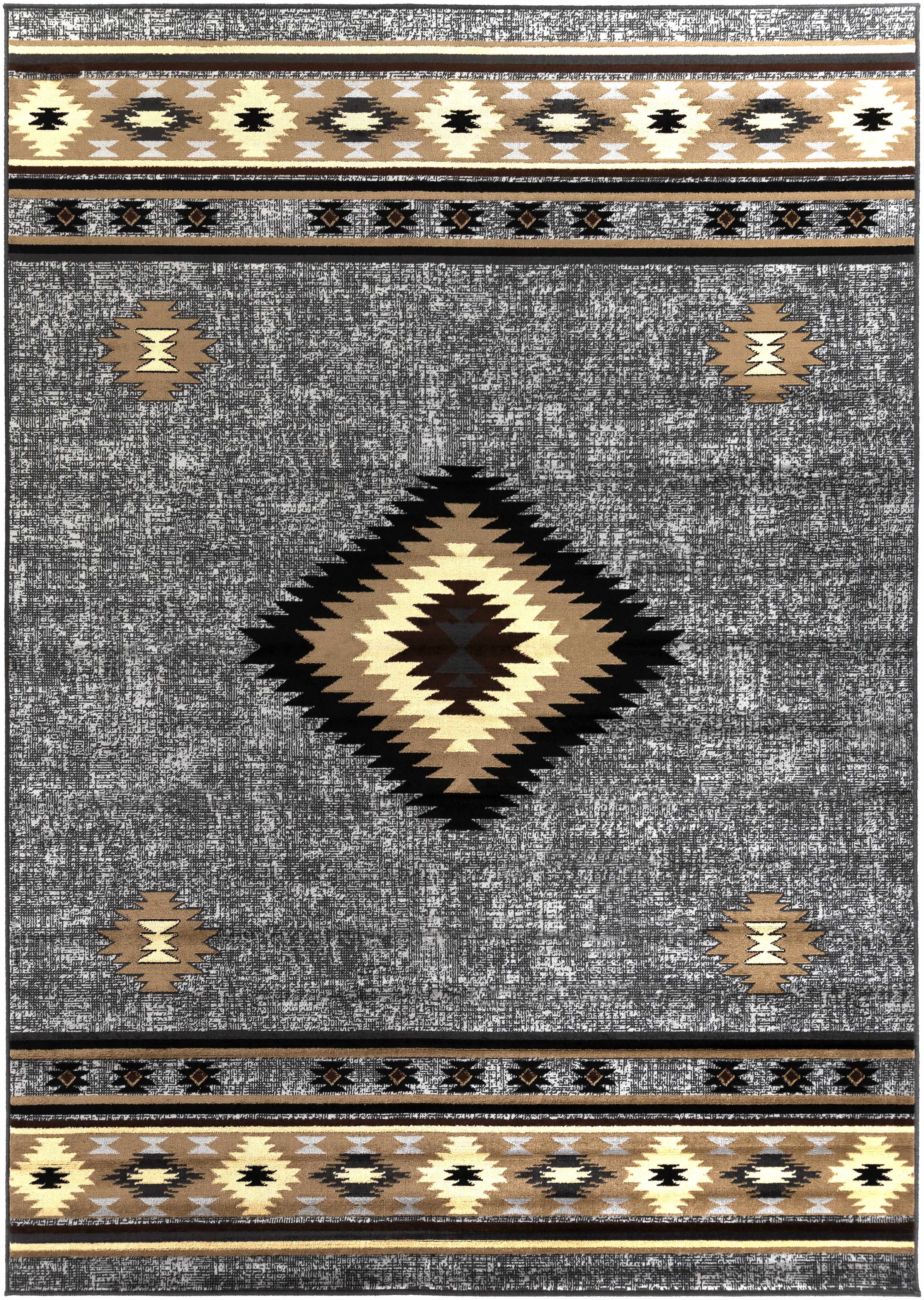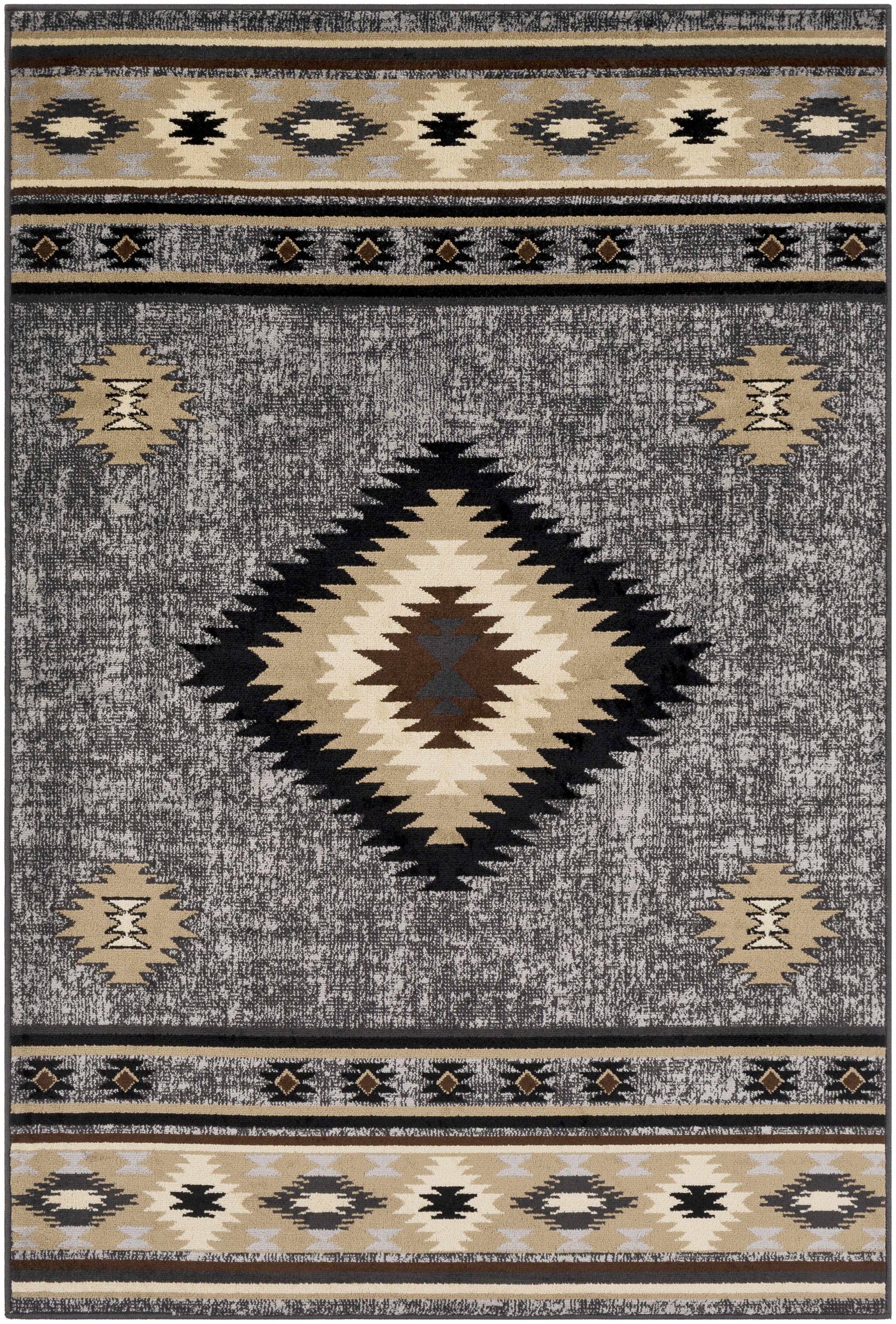 About: This beautiful Southwestern rug is made with an affordable price and excellent quality in mind, and it's the perfect way to add a little bit of flair to your traditional decor line. The rug features a stunning Aztec-inspired diamond pattern in brown, gray, black, beige, and tan colors that is sure to add a touch of luxury to any room.