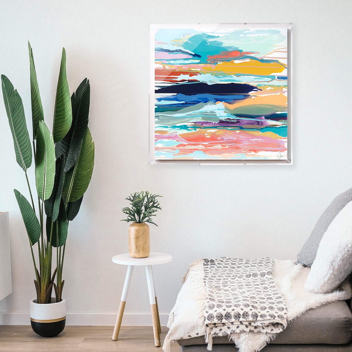- 20x20x1" or 28x28x1" thick art piece printed on archival, ultra smooth, matte canvas.