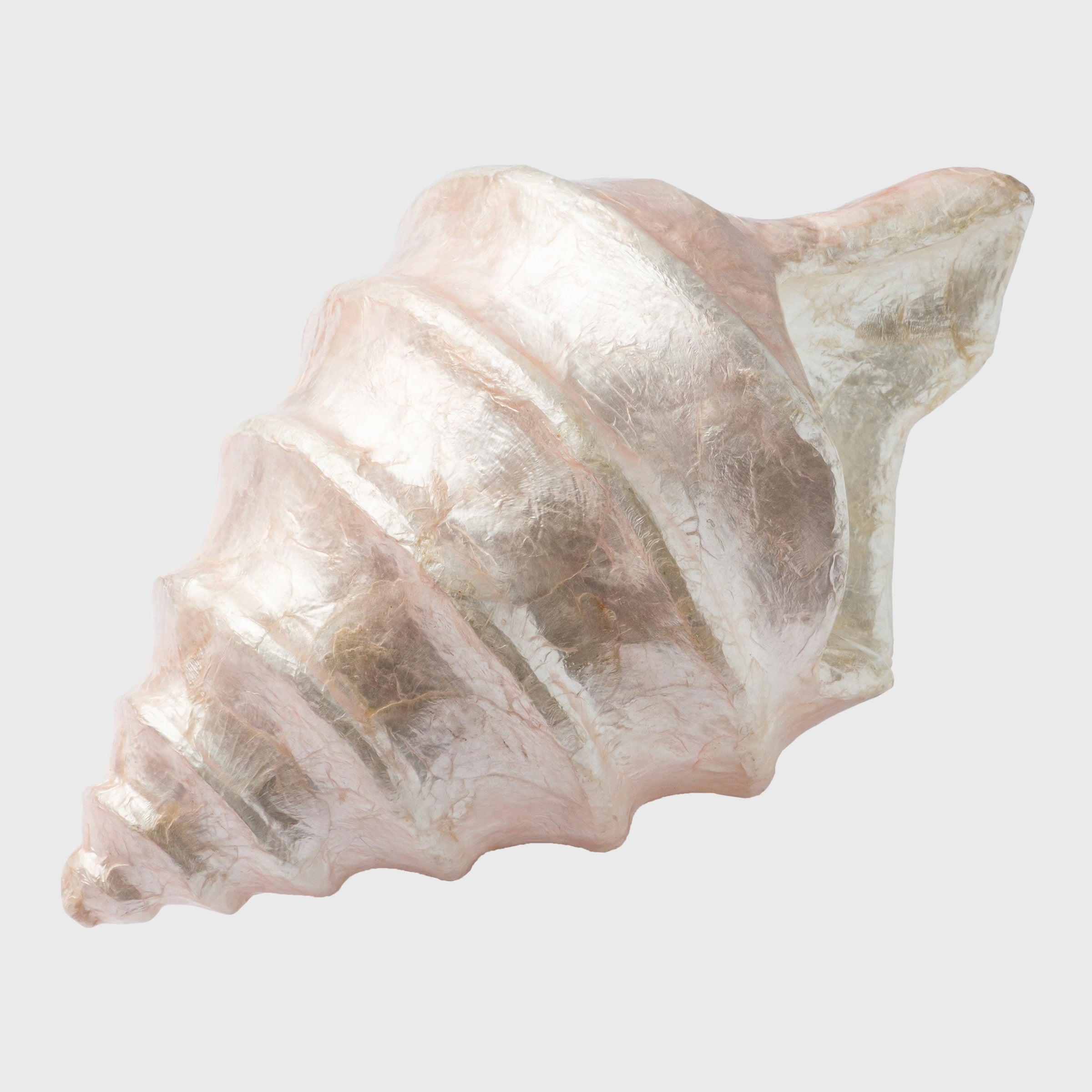 This handmade decorative shell objet is so beautiful for any coastal home or yacht. It's the palest pink shell colour, made from real capiz and looks almost real. A stunning piece on a bookshelf or mantlepiece.