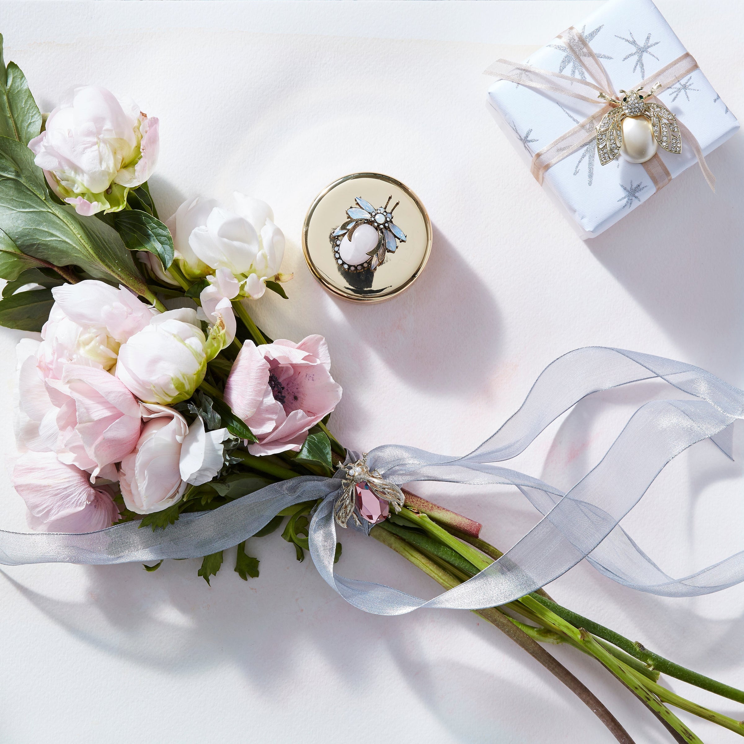 Our signature classic sparkle bug clips in pale green, pearl and pale pink. We love these for a bit of glam in a pastel Christmas wreath. Equally perfect for a special bridal bouquet or a bridal brunch table decoration! Pop onto a floral centerpiece for something stunning and completely original.