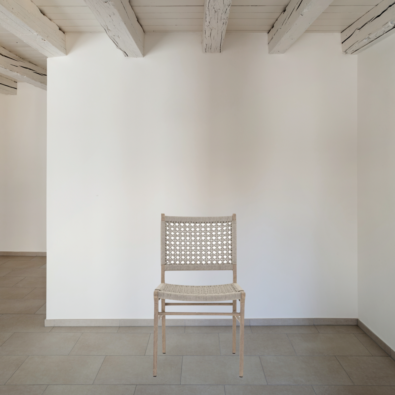 Simply stylish, indoors or out. Washed brown teak frames woven ivory rope, making a texture-driven statement. Cover or store inside during inclement weather and when not in use.