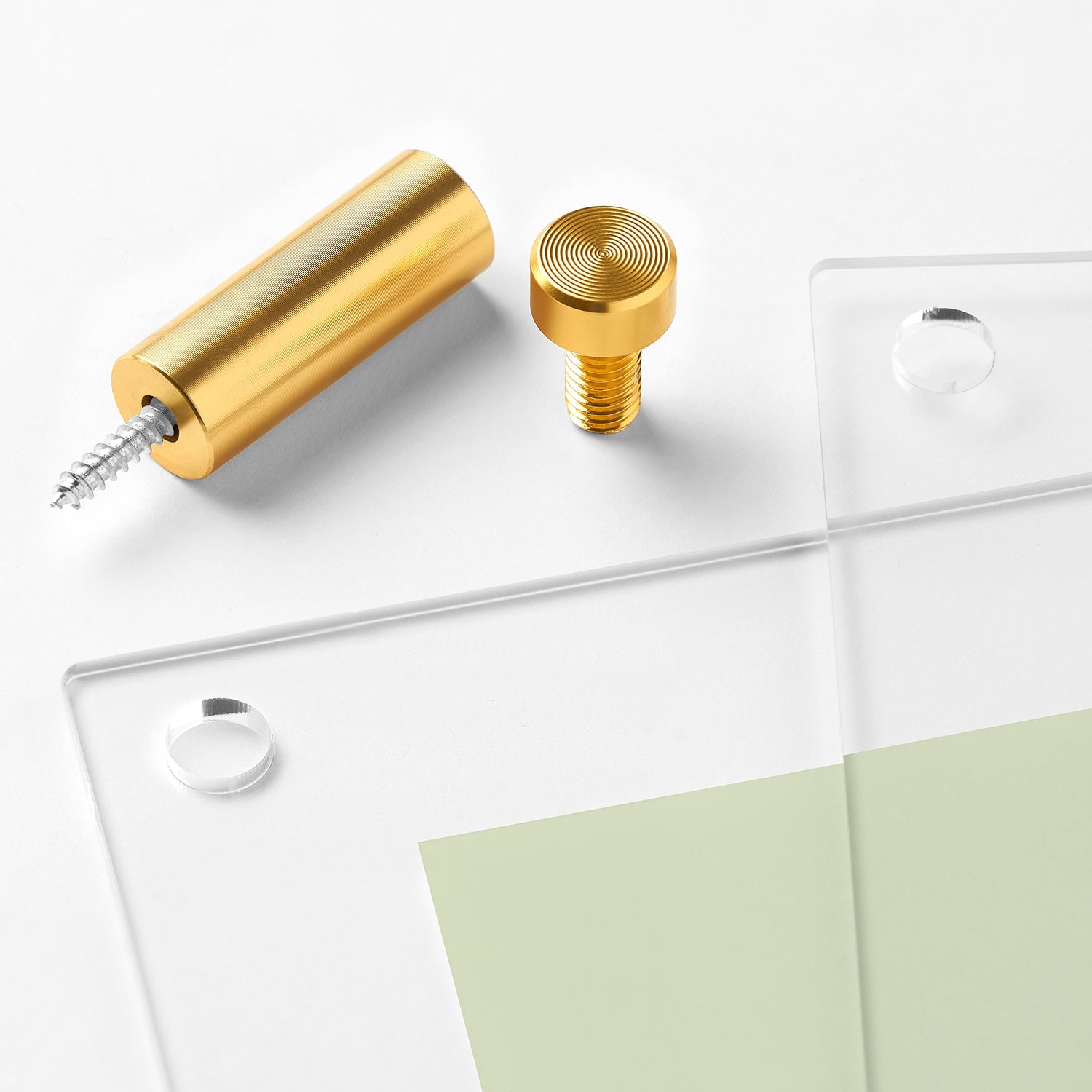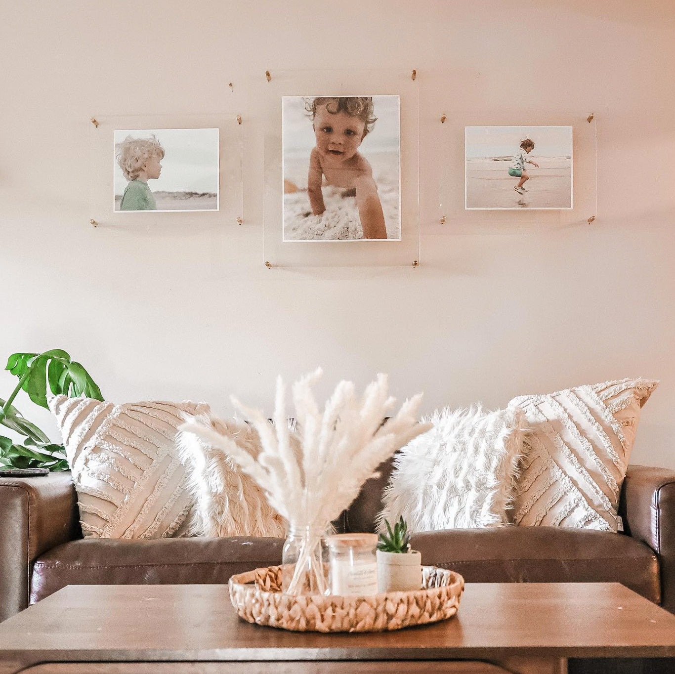 This set of 3 Wexel Art displays lets create your own gallery in many configurations. Each frame consists of two, high-quality panels of acrylic that exhibit your piece. Float your artwork and posters off the wall while fully enclosing your art in between the two panels of acrylic. When you want to change out your display, just unscrew the caps on the hardware and lift off the acrylic.