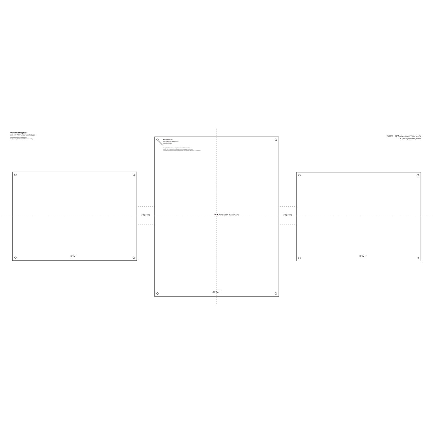 Three is key when designing a gallery wall. Showcase posters, artwork, and photos. Also works beautifully for retail store settings and design firms showcasing creative concepts.