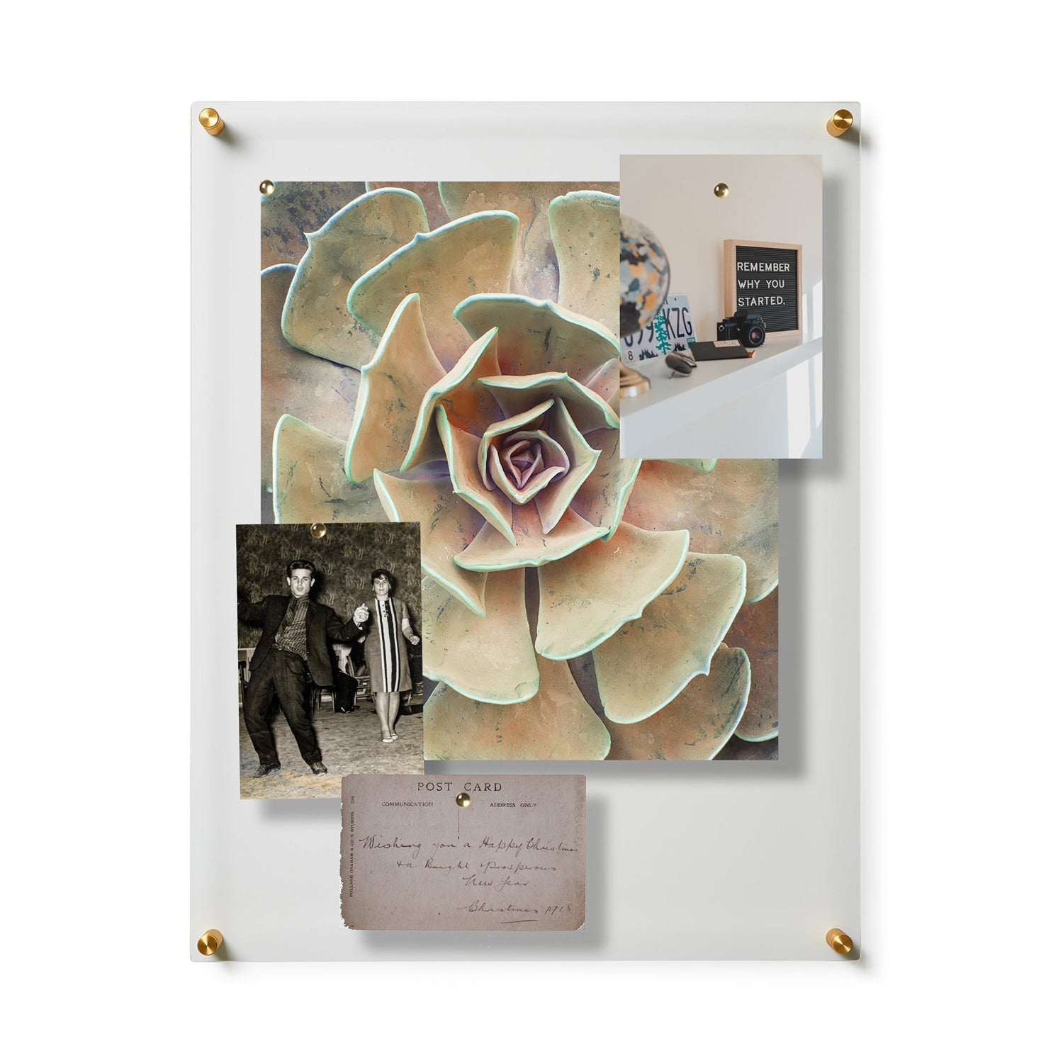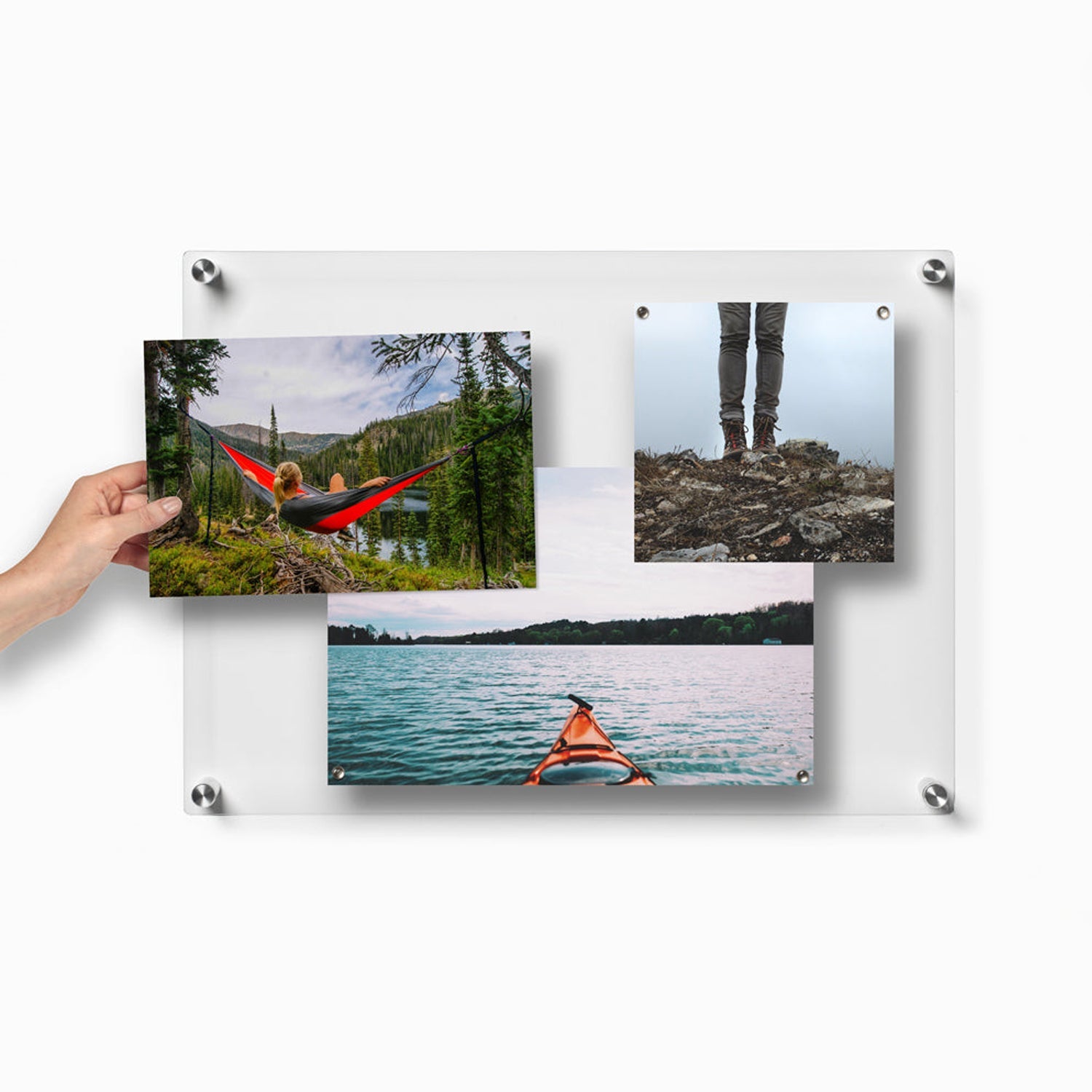 Easy Change Memo Boards are ideal for anything you want to change again and again - like photos, notes, fabric swatches, and more. Float your art behind a single panel of acrylic with Impressively Strong Magnets. Frameless frames (also known as lucite or plexiglass frames) let your art and photos take center stage and Wexel's framing grade acrylic is diamond polished giving your frame the perfect finishing touch. These can be hung vertically or horizontally.