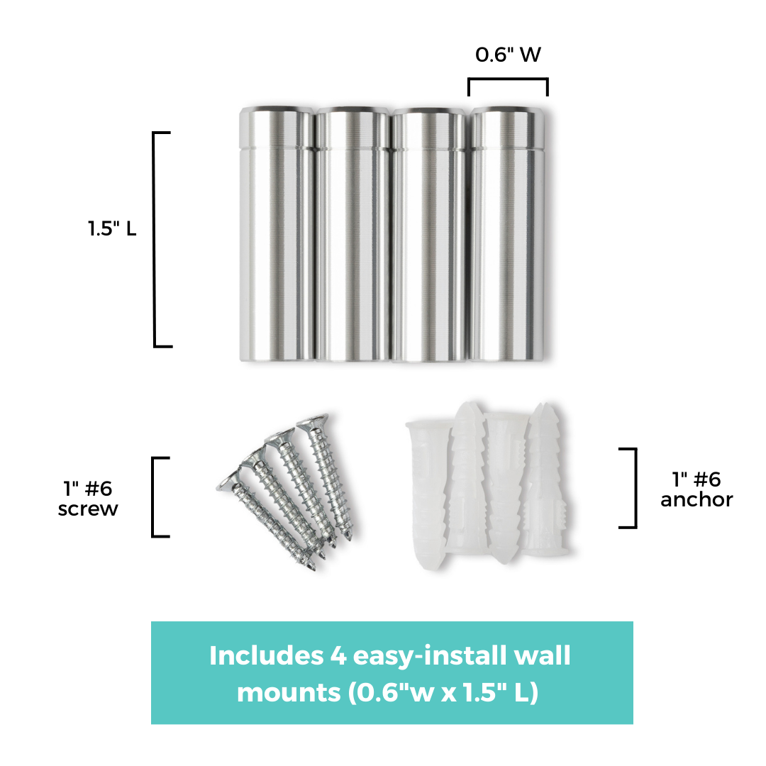 - Easy-install wall mounts with screws and anchors (0.6"w x 1.5" L)