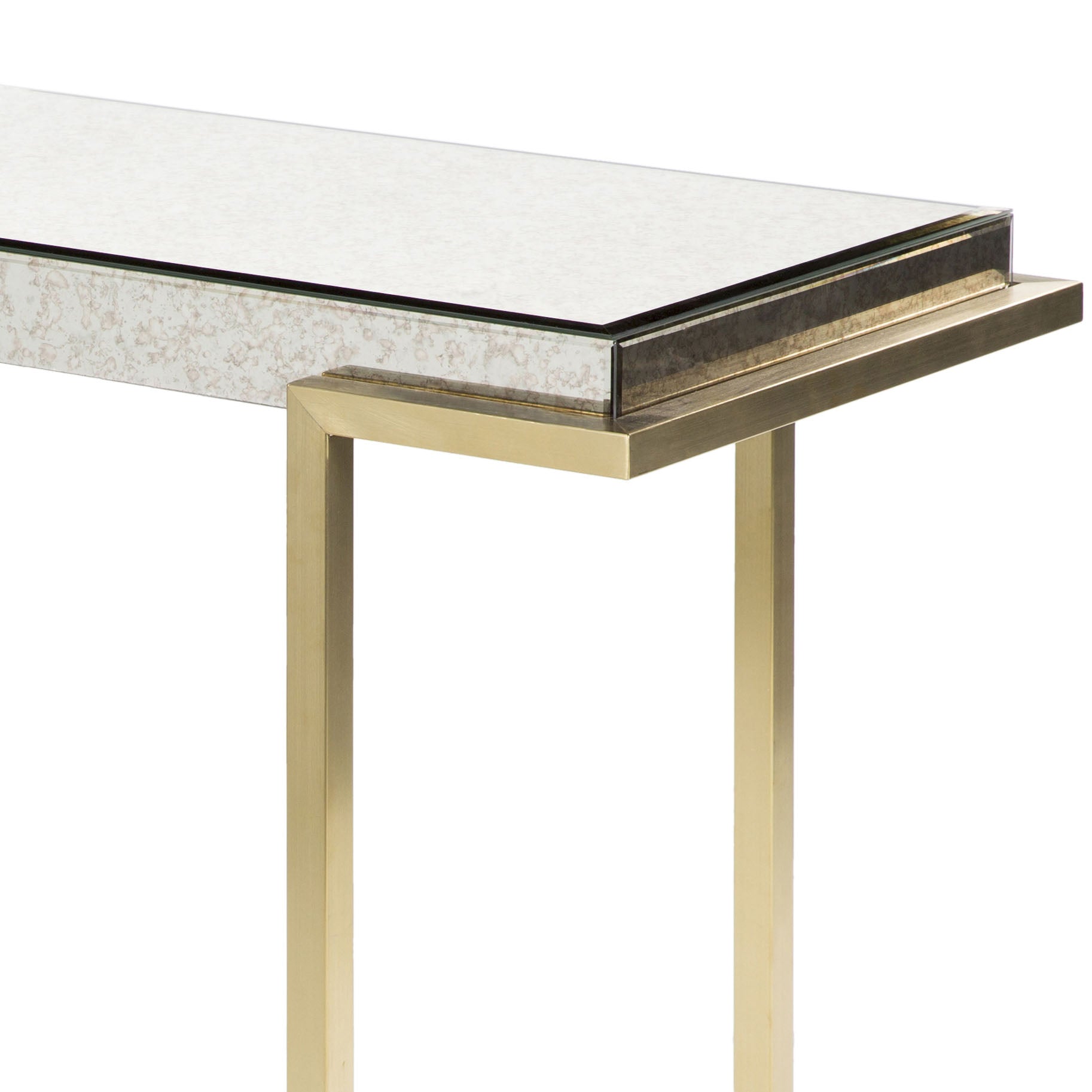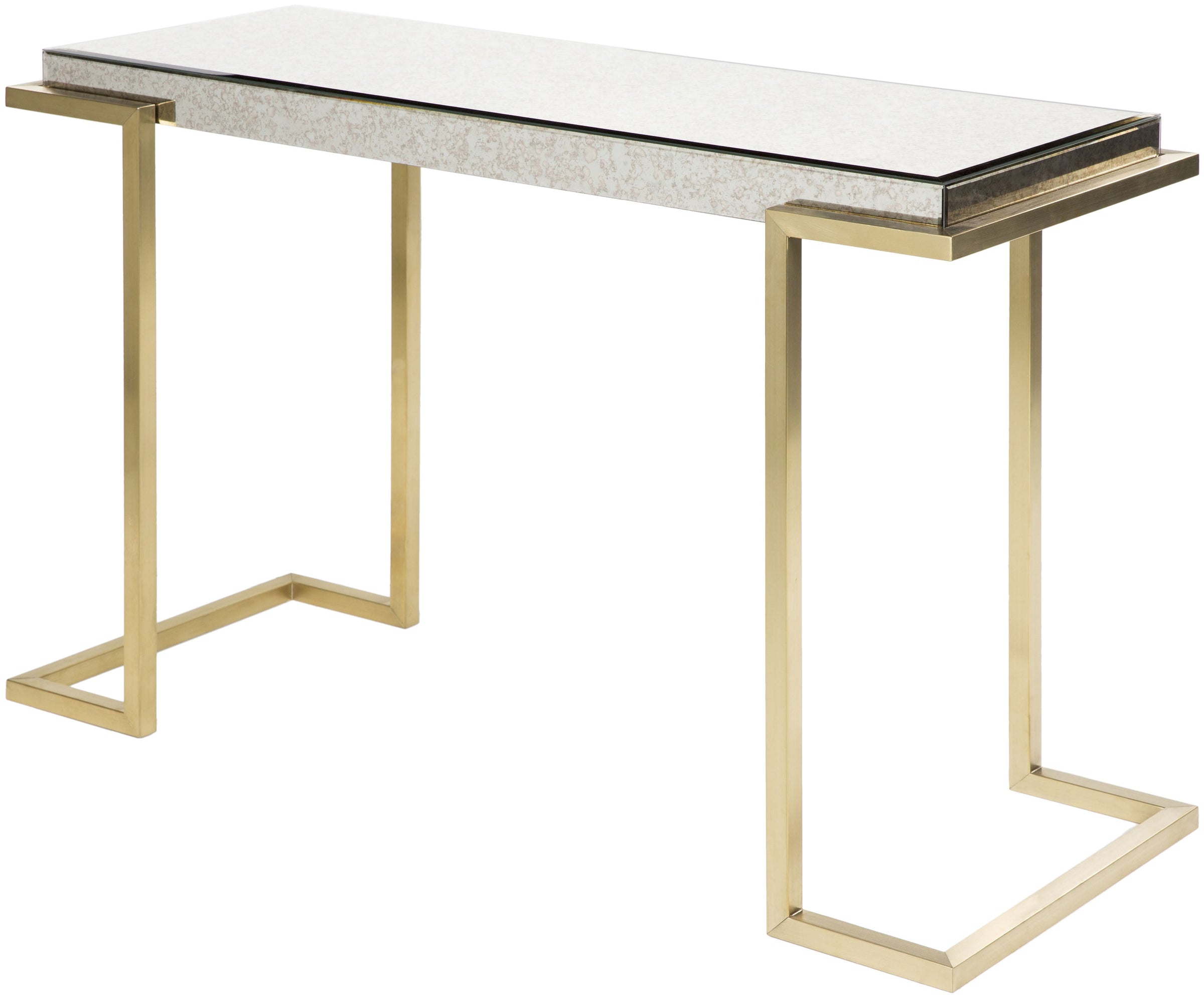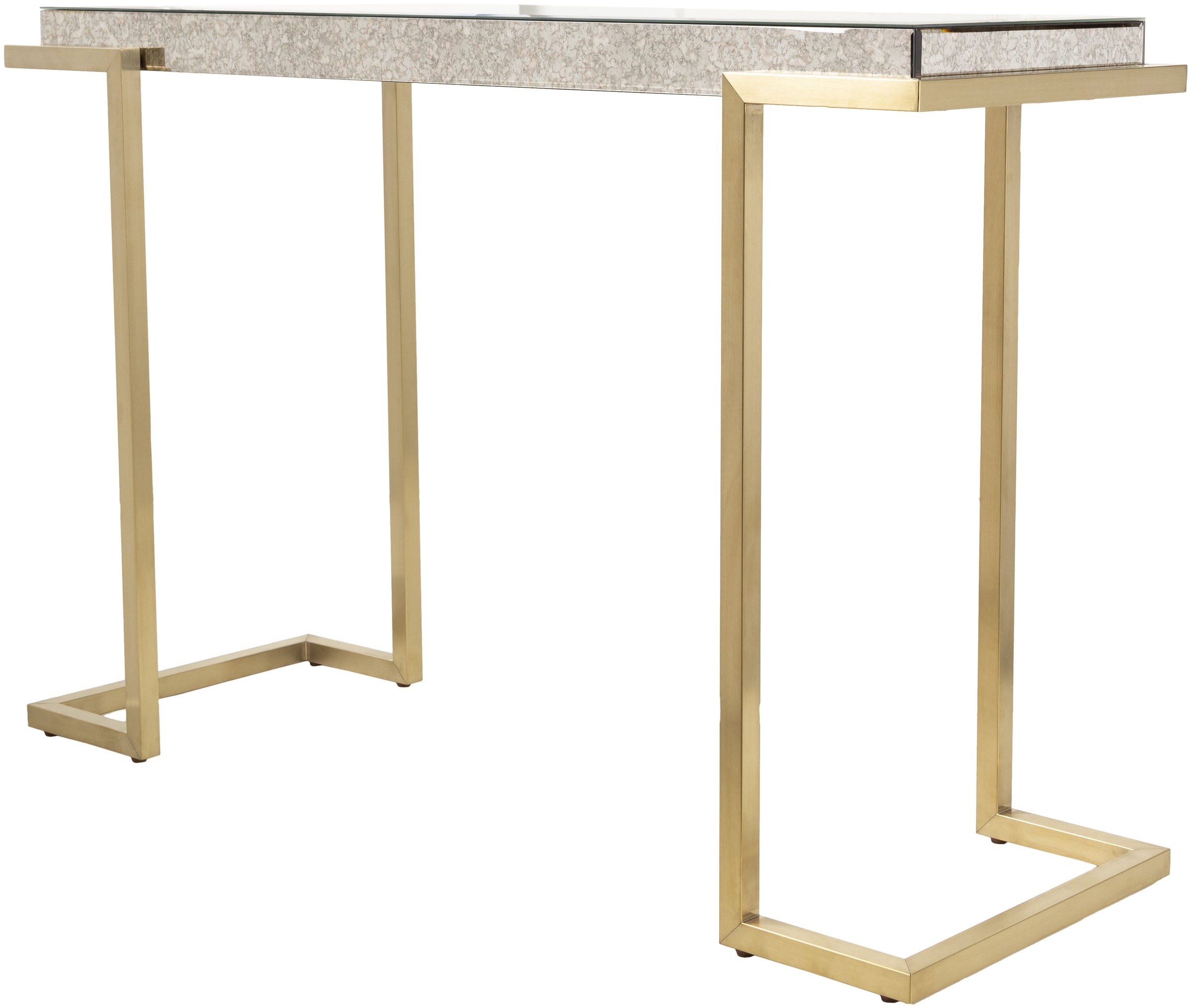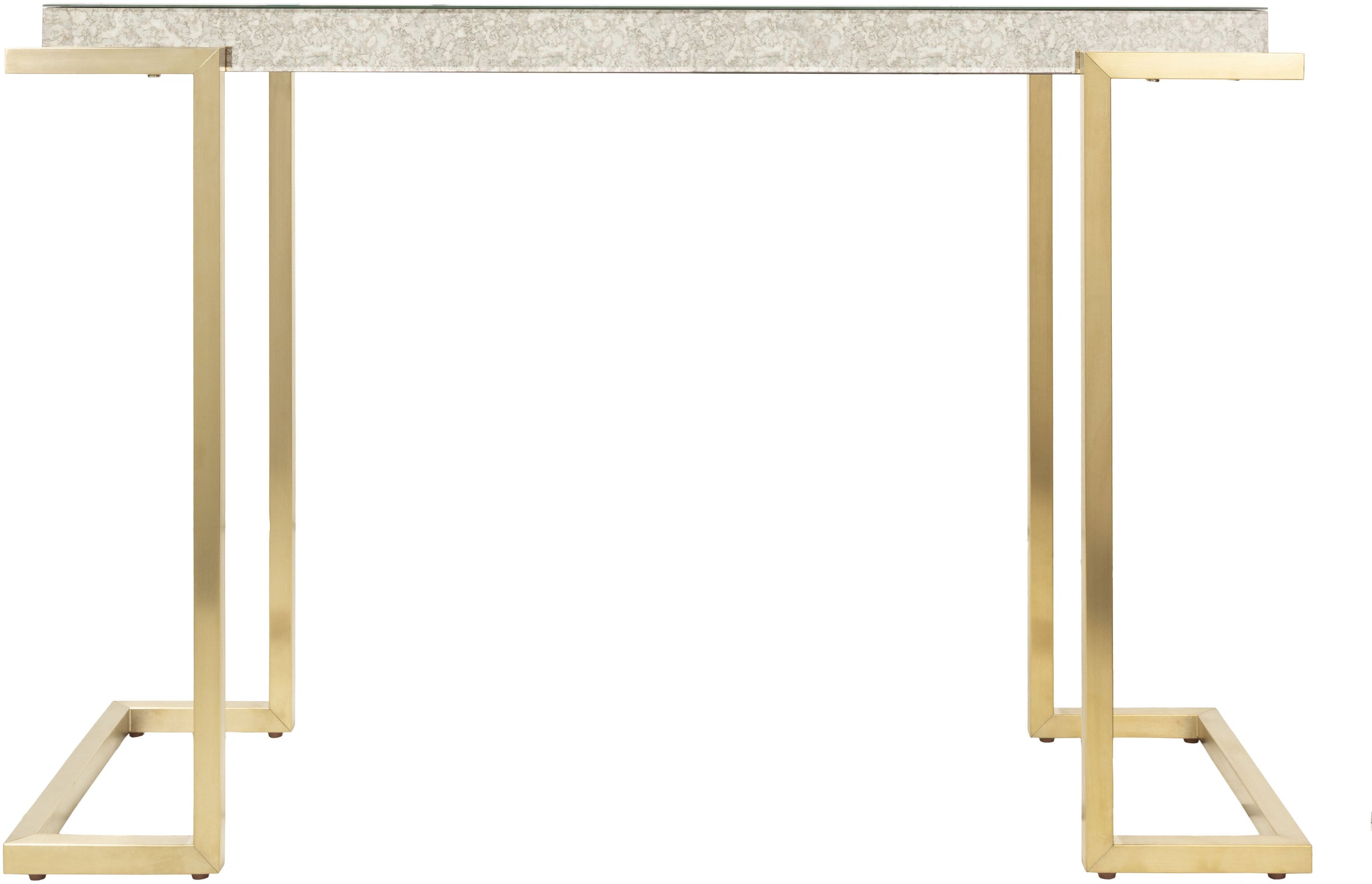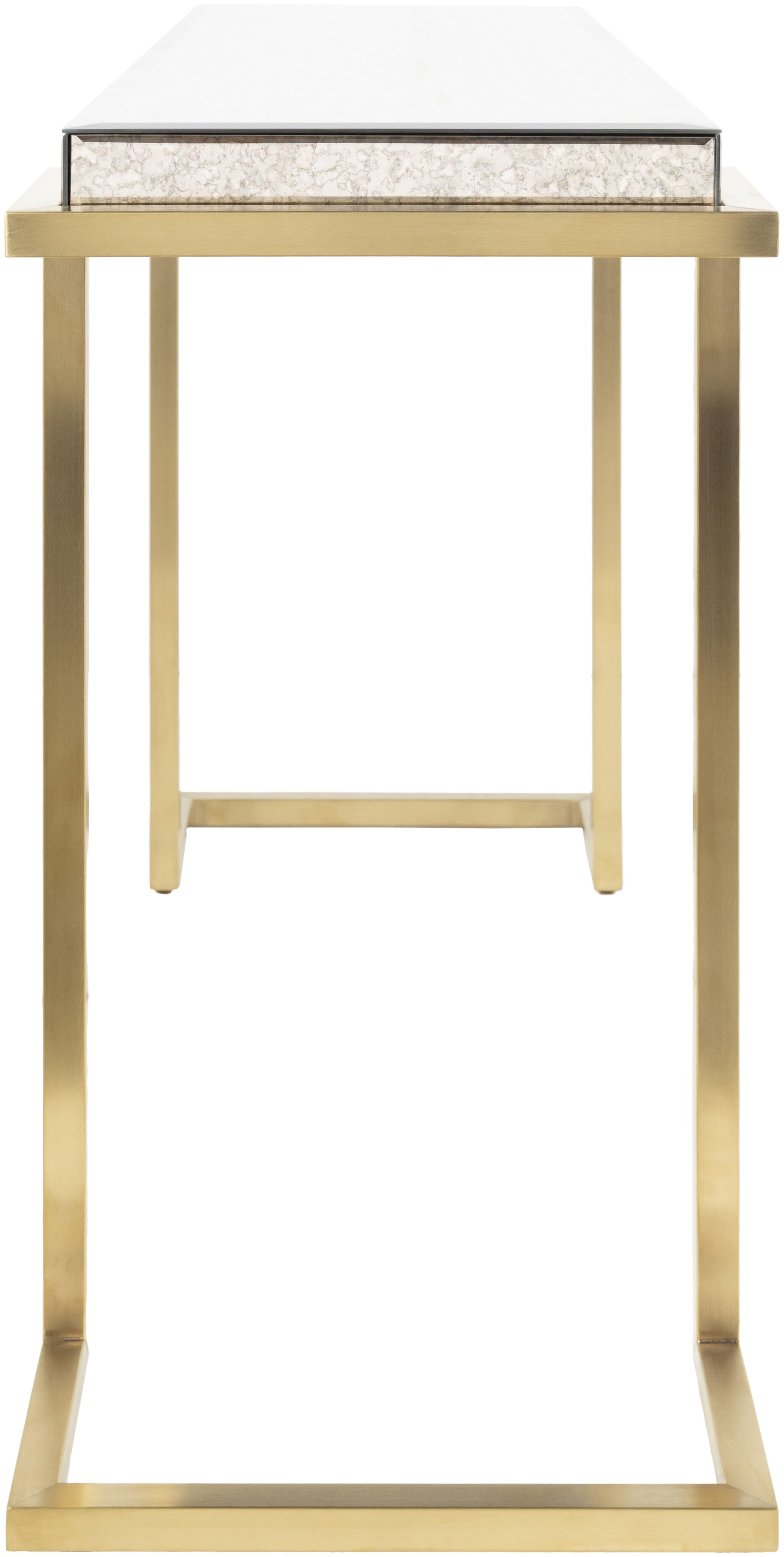 The Frohnleiten Gold Furniture Piece has gold metal legs and a glass surface. This combination offers a fine taste and a refreshing atmosphere. This furniture piece is handmade. It emphasizes modernism with the choice of color.