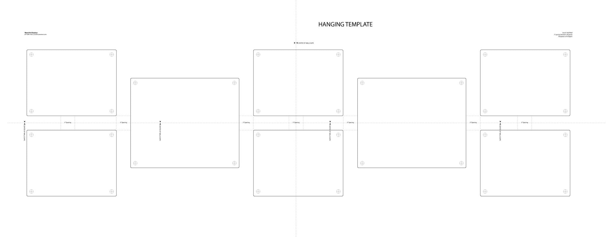 Ideal for hallways in office buildings or corridors in homes, this set of 8 Wexel Art displays lets you to create your very own gallery wall in many ways. The arrangement is 115" wide x 31" tall as pictured. Rotate the 19x23" frame vertically to make it 107" wide.