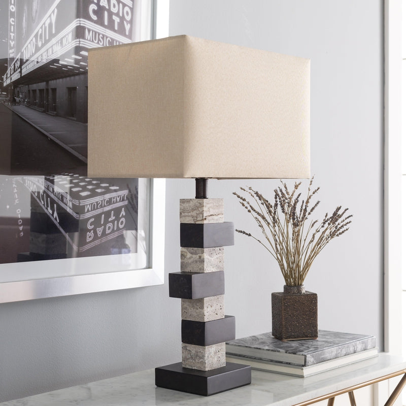 - Color: Body: Camel, Dark Brown; Base: Dark Brown; Shade (Outside): Taupe; Shade (Inside): White; Finial: Dark Brown; Harp: Metallic - Brass; Cord: Translucent