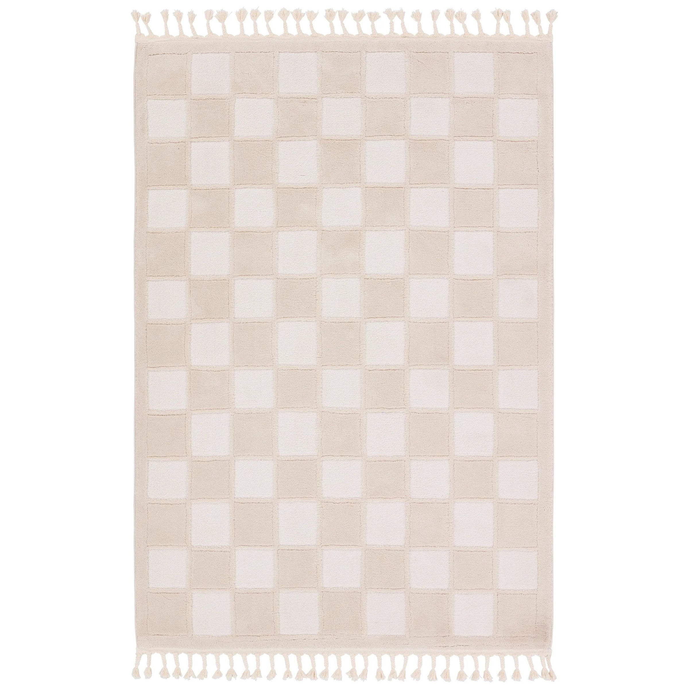 The Jaida collection is inspired by a coveted blend of modern Moroccan style and cozy, inviting vibes. These rugs showcase an incredibly soft hand, with a touch high-low detail mixed into the pattern, and a shed-free construction of polyester and polypropylene. The braided, cream fringe paired with an ivory and cream grid pattern of the Catanza rug provides visual texture and global appeal. This plush area rug thrives in high traffic areas of the home such as living rooms, foyers, halls, and sunrooms.