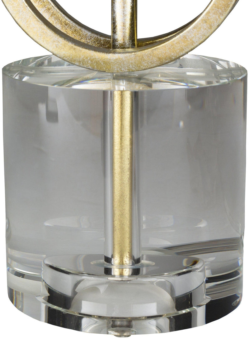 - Color: Body: Gold; Base: Clear; Finial: Gold; Harp: Metallic - Brass