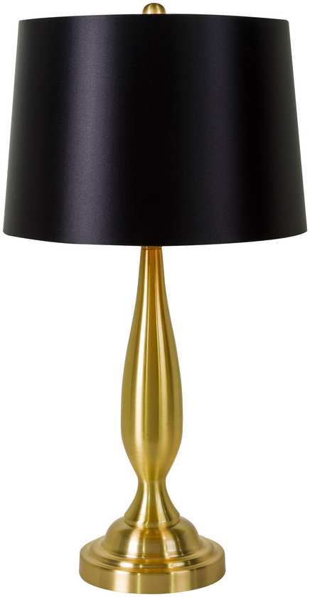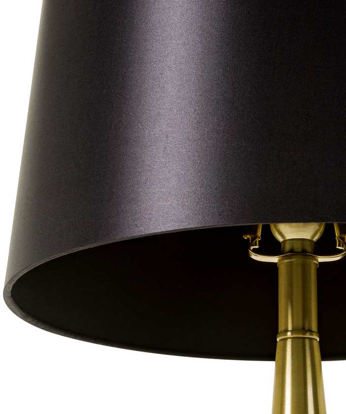 - Color: Body: Metallic - Brass; Base: Metallic - Brass; Shade: Black; Finial: Metallic - Brass; Harp: Metallic - Brass; Cord: Translucent