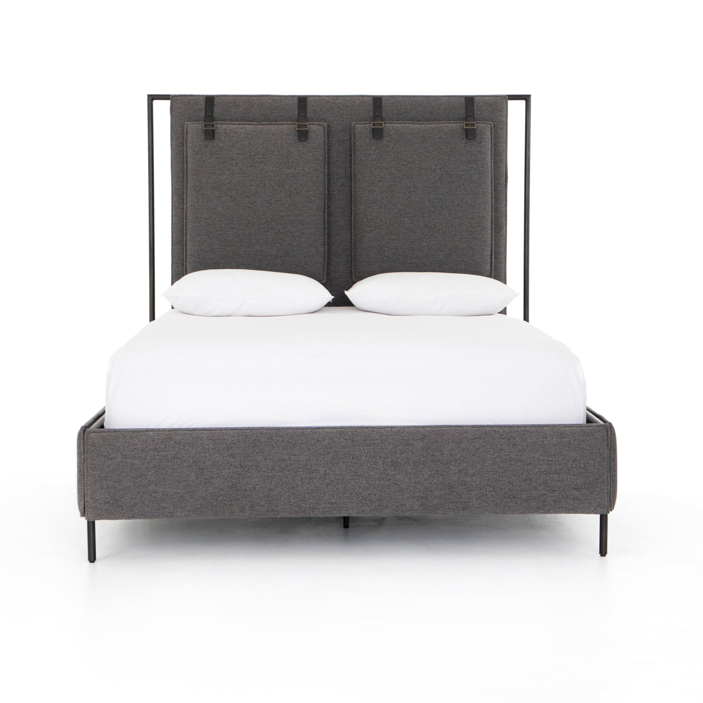 The black straps on this Leigh San Remo Ash Upholstered Bed give any bedroom a stylish, modern look.
