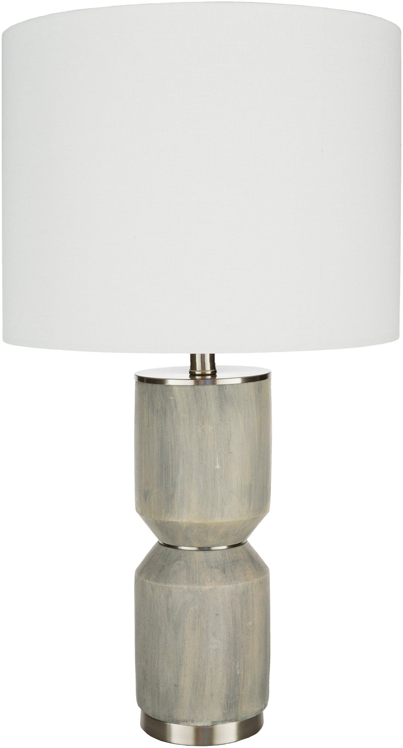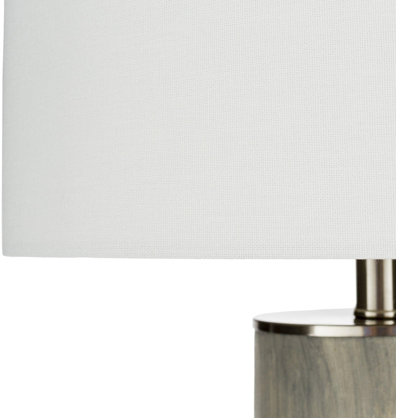 - Color: Body: Medium Gray; Base: Metallic - Nickel; Shade: White; Finial: Metallic - Nickel; Harp: Metallic - Nickel; Cord: Translucent