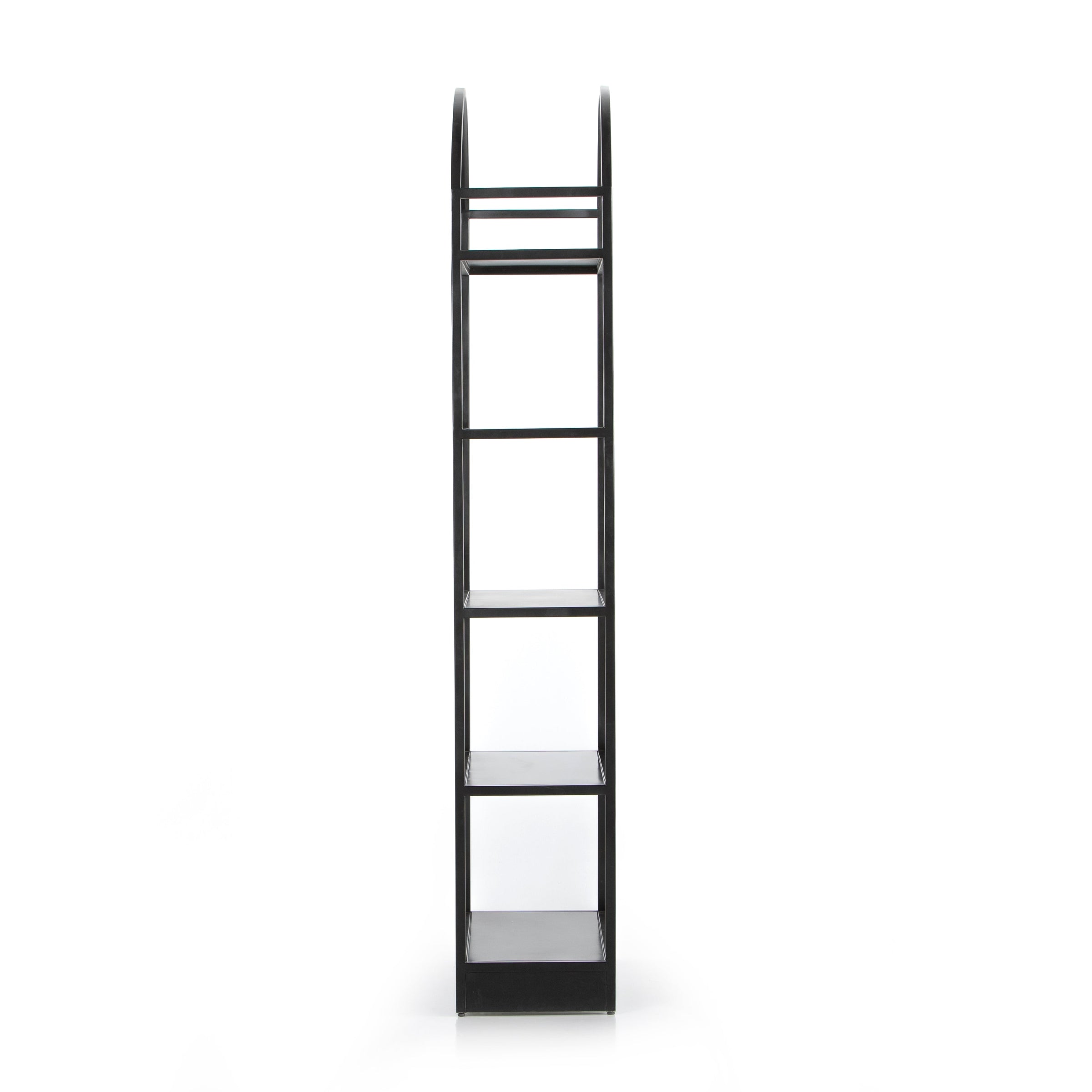 This Loomis Bookcase - Black is sleek, simple and beautifully on-trend. Black-finished iron forms an airy open frame, with an arched top for modernity in any office, living, or other space!