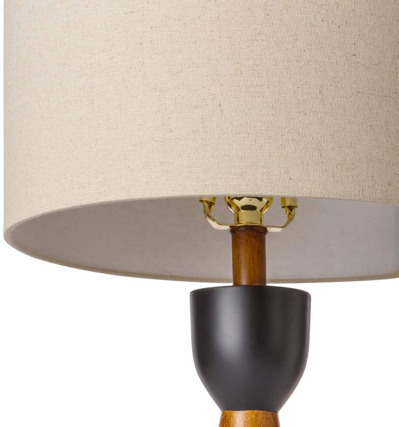 - Color: Body: Brown; Shade (Outside): Beige; Shade (Inside): White; Finial: Brown; Harp: Metallic - Nickel; Cord: Black
