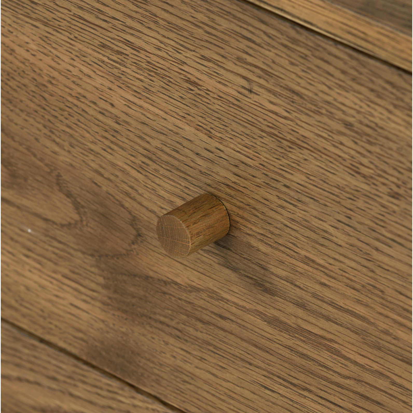 With simple shaping inspired by midcentury casing, exposed framework and a warm oak finish bring a handcrafted, minimalist look to stylish bedside storage.