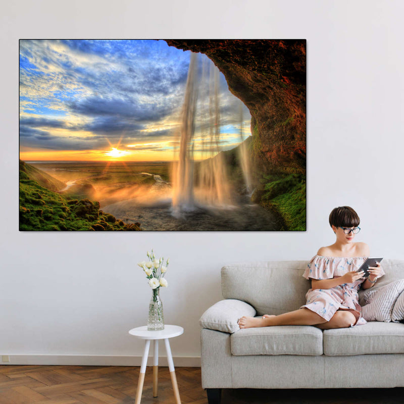 Mountain Waterfall Wall Art will refresh your mind and soul whenever you stop and stare at it. This high-quality art print will complement any room in your home and soothe your senses with nature's beauty.