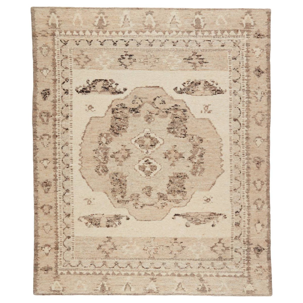 The inviting and traditionally inspired Repose collection marries stunning artisan craftsmanship and the beauty of natural, undyed wool. The Sherpa-like, hand-knotted construction of the Solna area rug boasts a plush texture underfoot and is perfect for adding warmth and coziness to a space. The neutral gray, brown, beige, and ivory tones ground the Kars-style motif with effortless versatility.