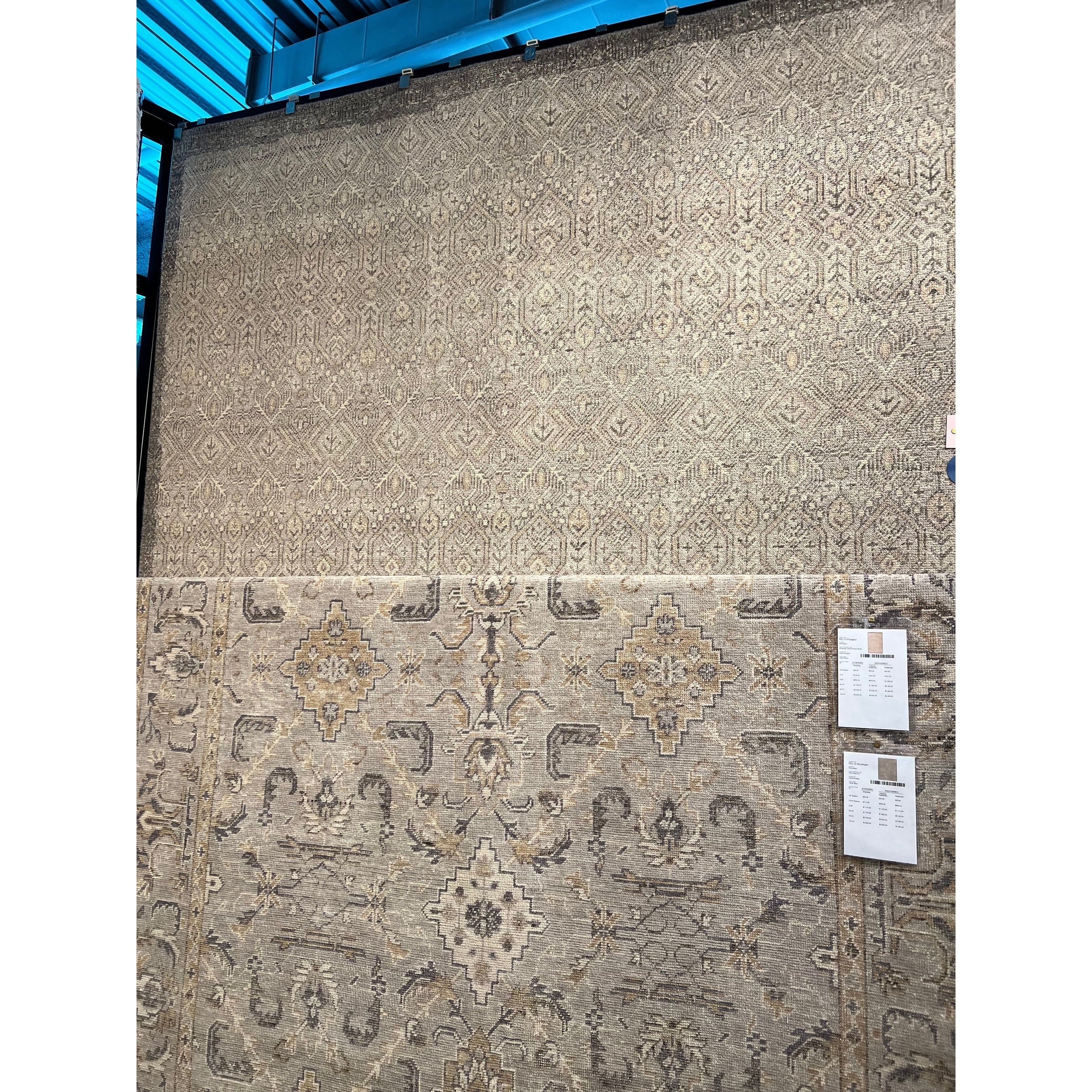 The Revolution collection is inspired by traditional style and beautifully detailed antique textile designs. The hand-knotted Prospect area rug showcases a captivating geometric design in muted tones of gray and gold. A charcoal edge creates a unique border effect around this globally inspired wool rug.
