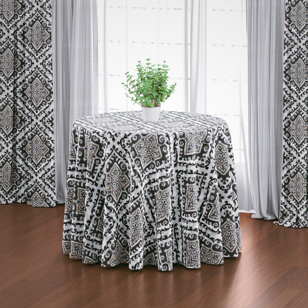 Round Tablecloth in Feabhra Slate Gray Diamond Medallion- Blue, Tan, Large Scale