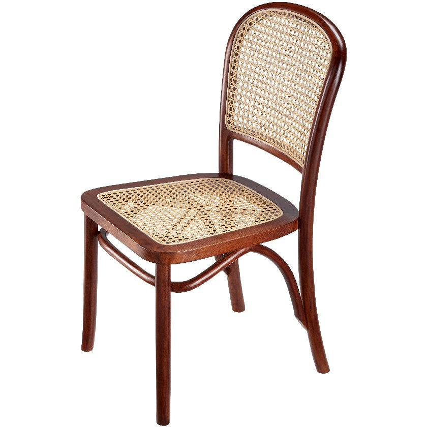 • Elegant Design: Mid-century modern style with a wheat-colored rattan seat and backrest set against a rich wooden base.