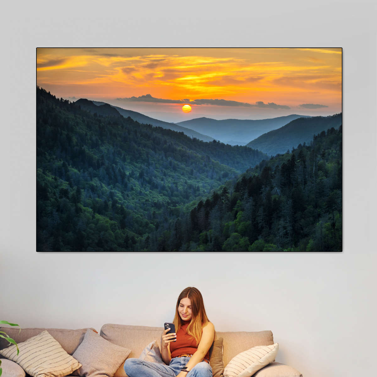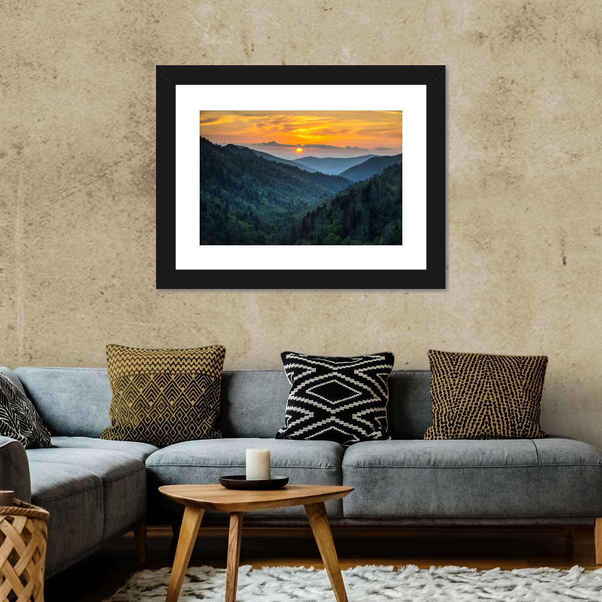 Lush Valley Sunset will refresh your mind and soul whenever you stop and stare at it. This high-quality art print will complement any room in your home and soothe your senses with nature's beauty.