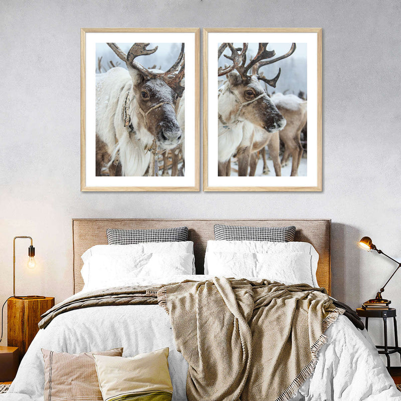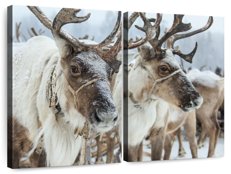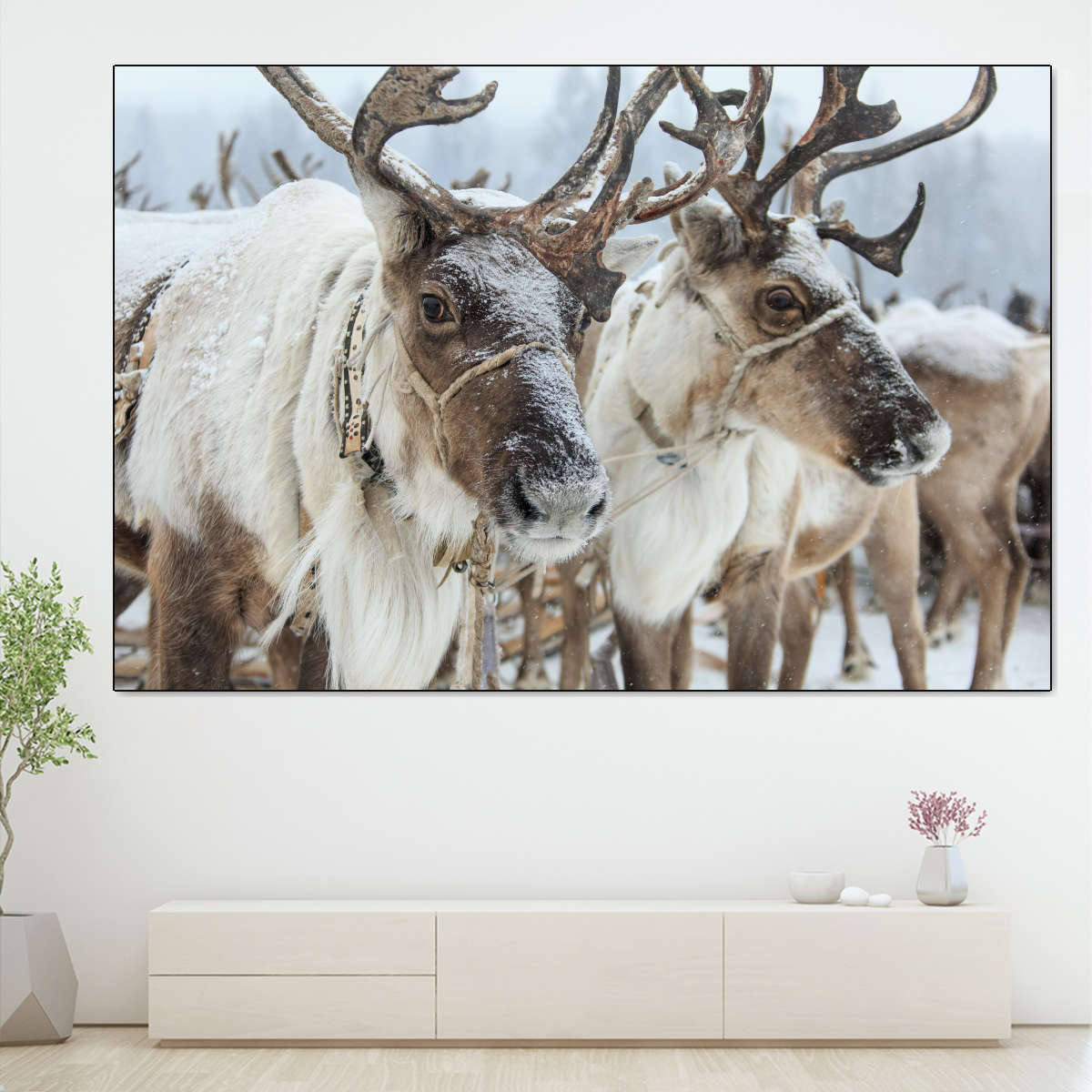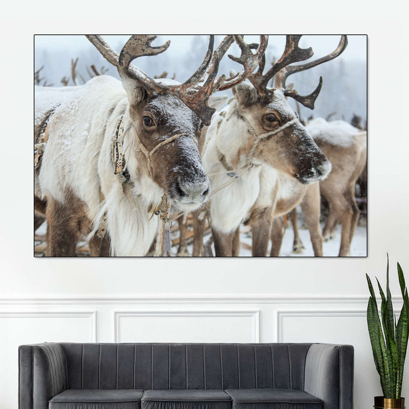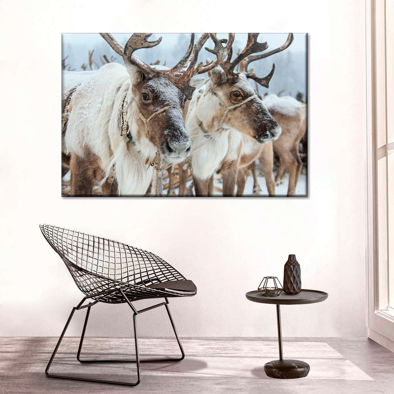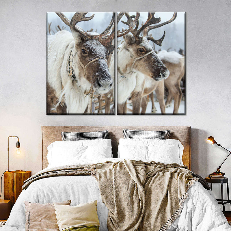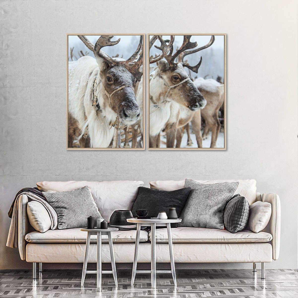 Snow Reindeer Multi Panel Canvas Wall Art gives your living room walls an awe-inspiring look. Hold the attention of your guests with this beautiful deer canvas print.