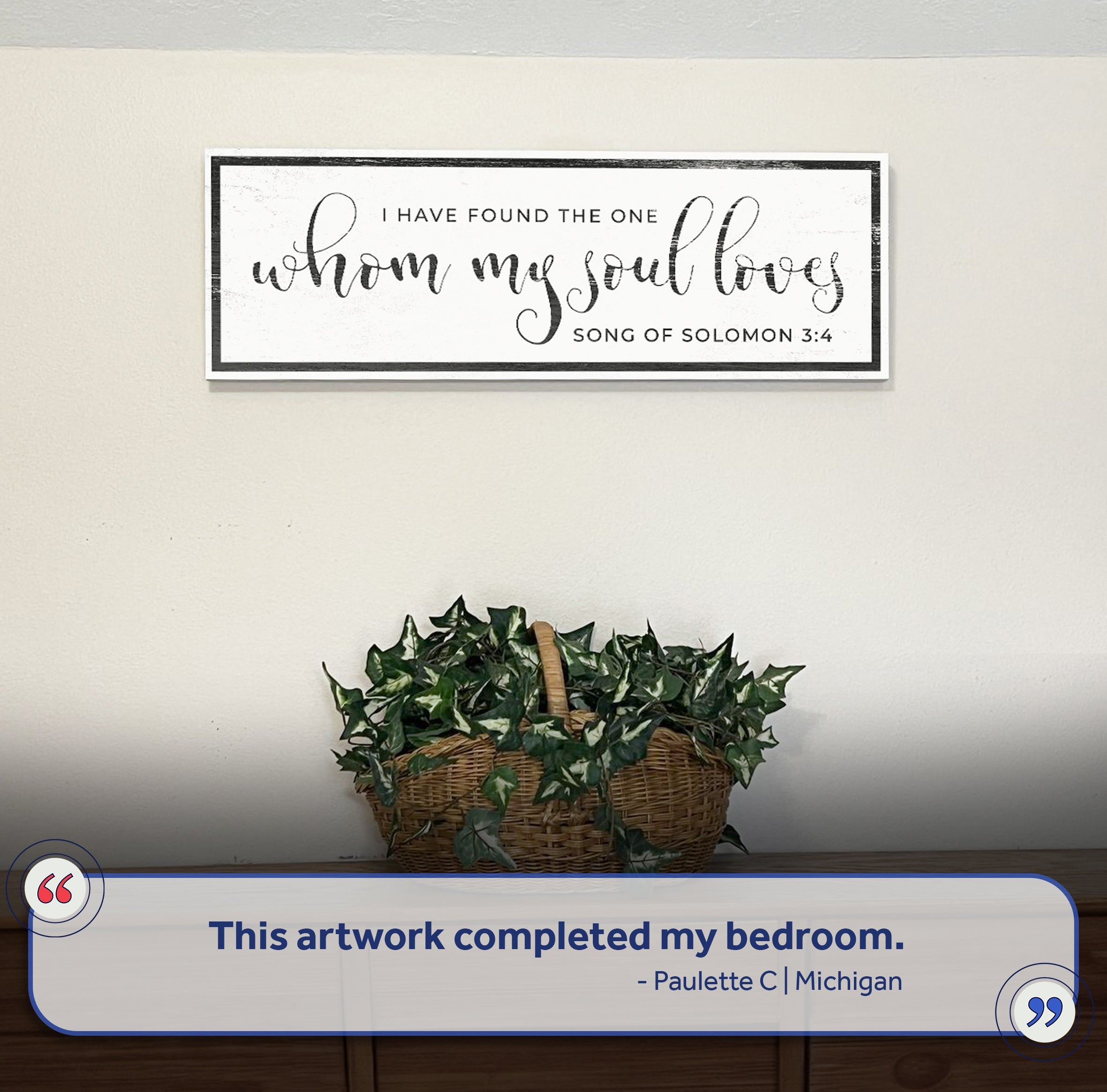 This Song of Solomon 3:4 - I Have Found the One sign will give your home or room an elegant vintage vibe! You can customize this Song of Solomon 3:4 - I Have Found the One canvas print with your family name or any text you like.