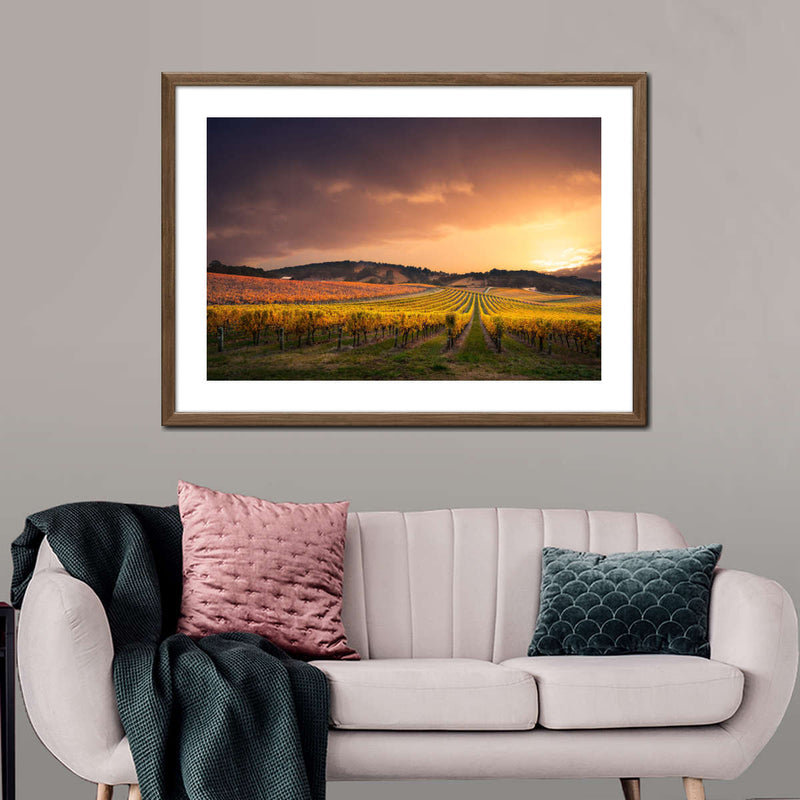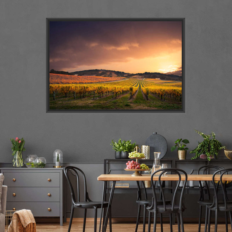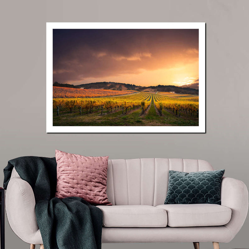 Grape Valley Sunset Multi Panel Canvas Wall Art add the timeless appeal of wineries to your home. Bring the aroma and elegance of wine on your walls to make your decor charming than ever before.