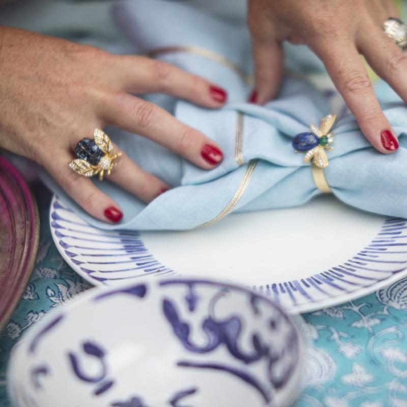 A navy blue cocktail ring with sparkling stones could not be more chic! Adjustable on the underside – so no need to worry about those off days!