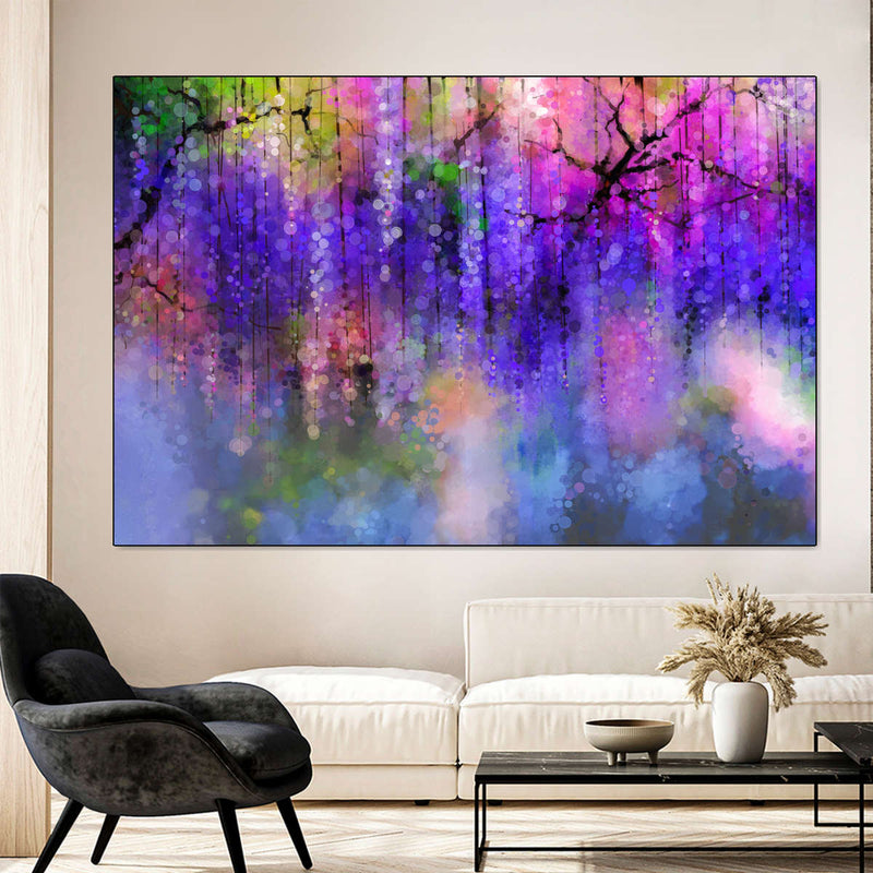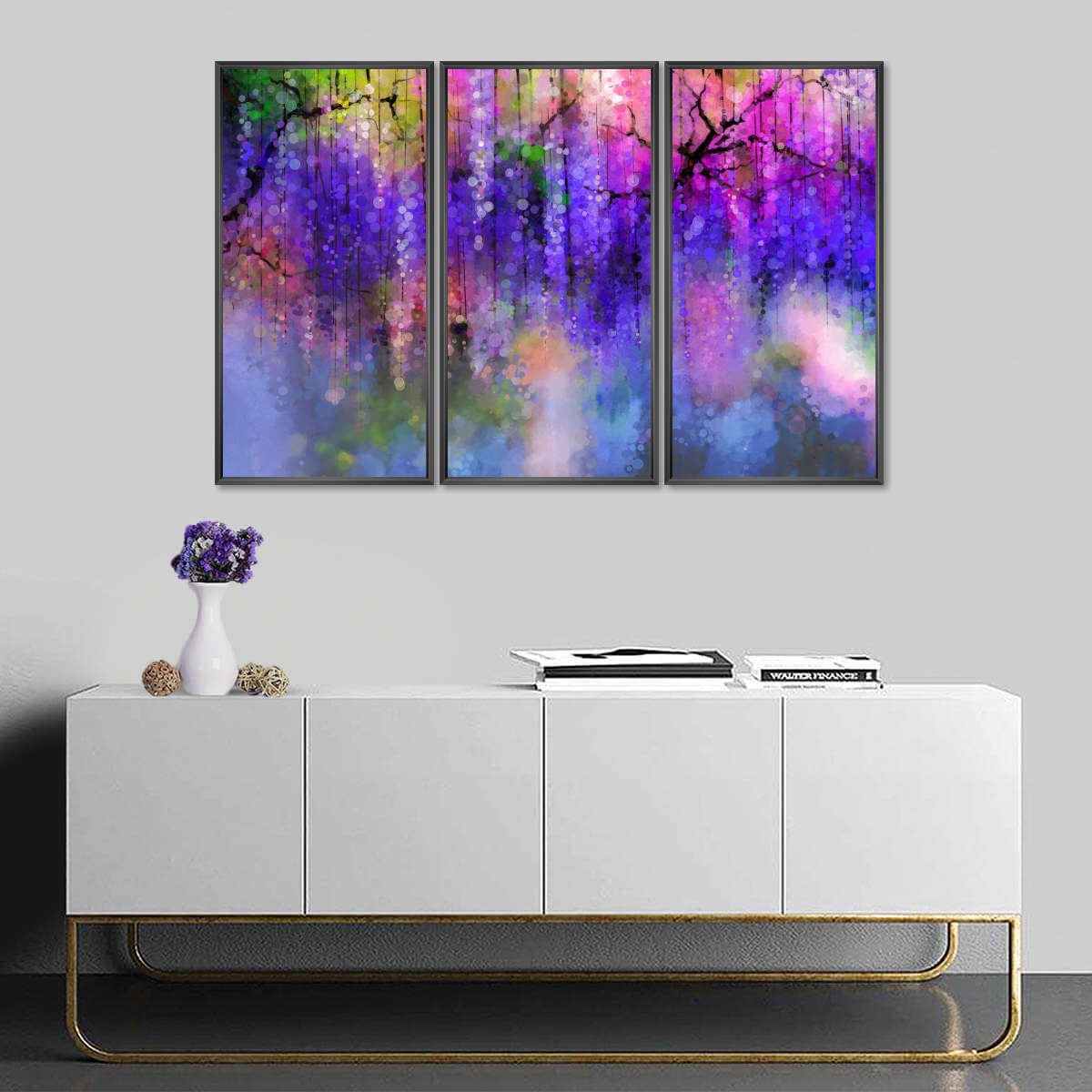 Abstract Wisteria Multi Panel Canvas Wall Art carefully handcrafted to bring unique style into your home. Change the entire feel of any space and make an interesting statement with this abstract canvas print.