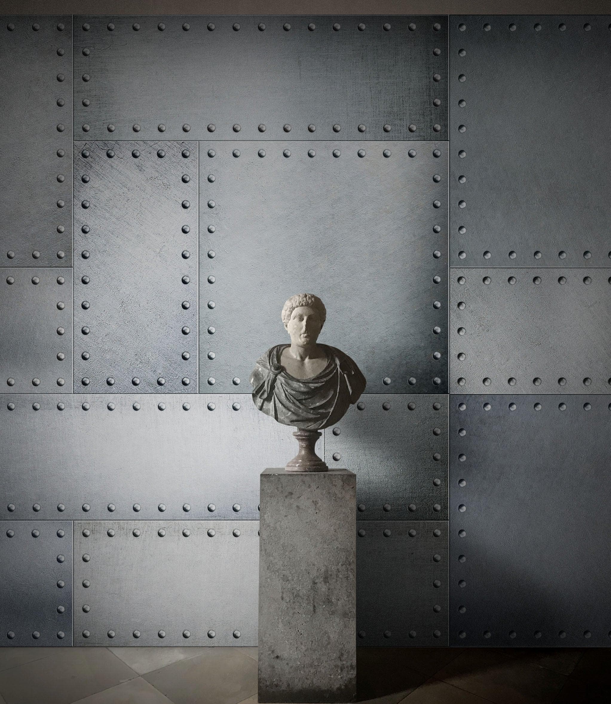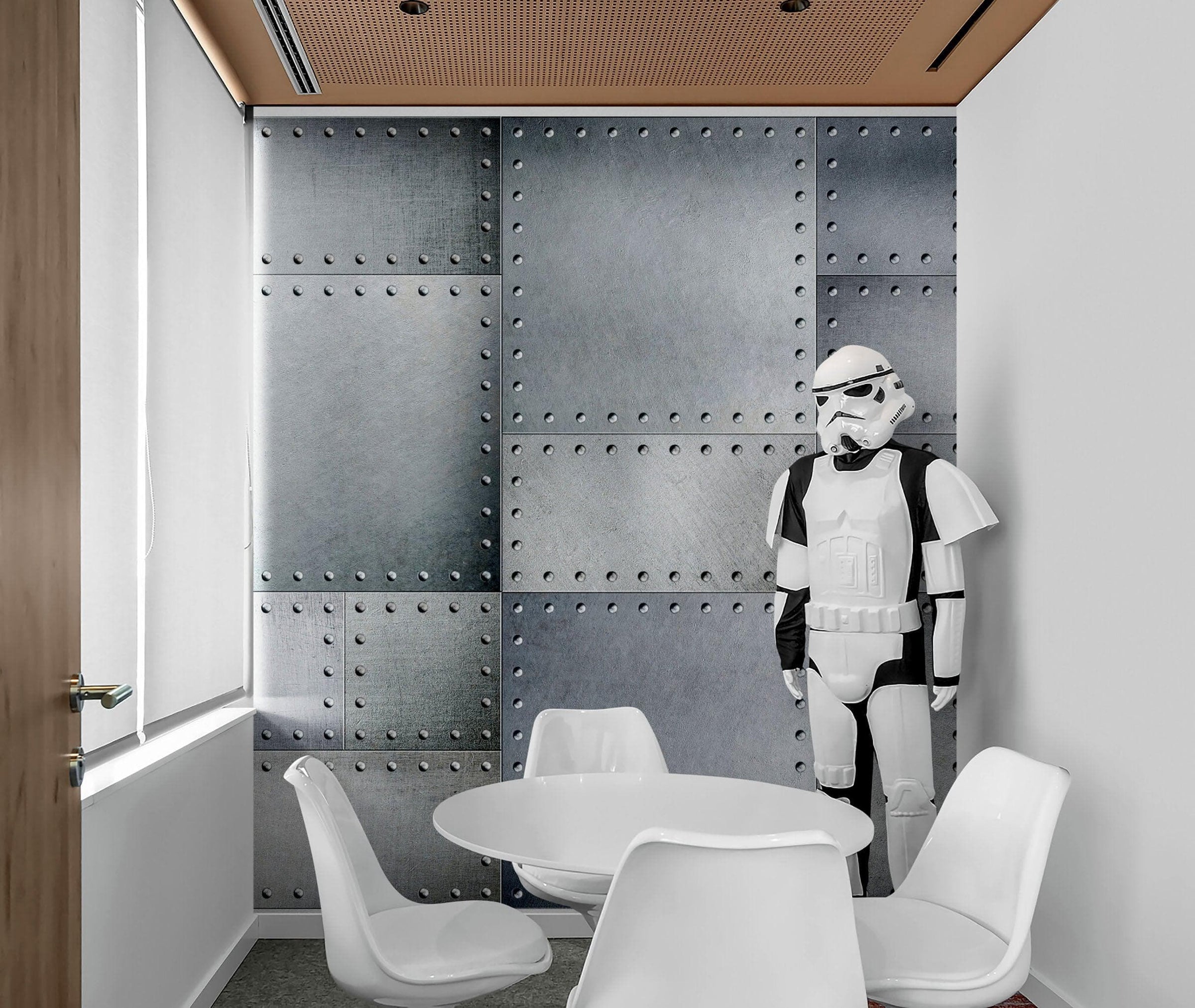 Stainless Steel Metal Grunge Design Wall Mural. Industrial Theme Peel and Stick Wallpaper. #6350