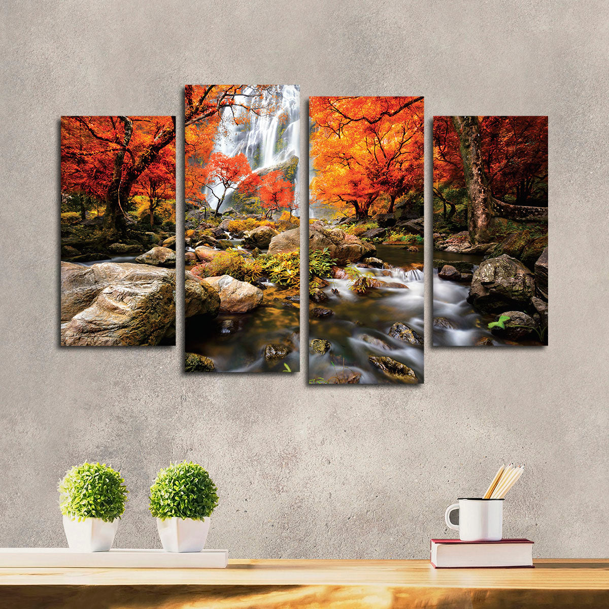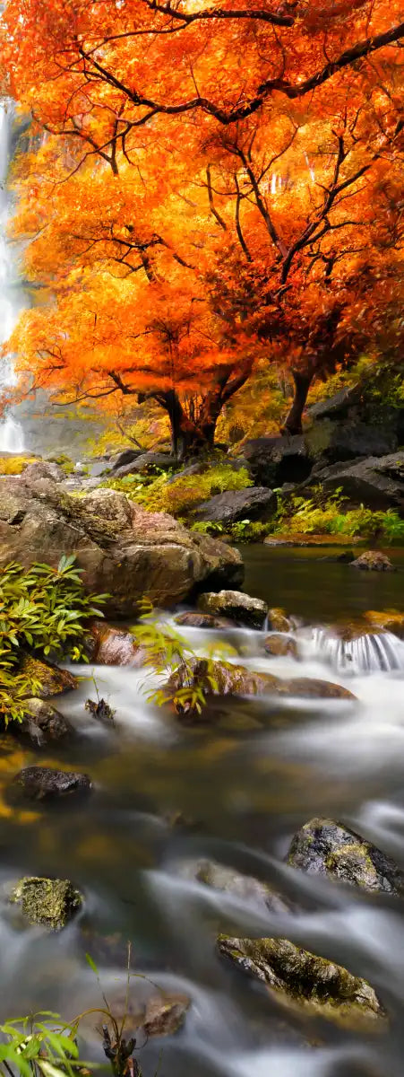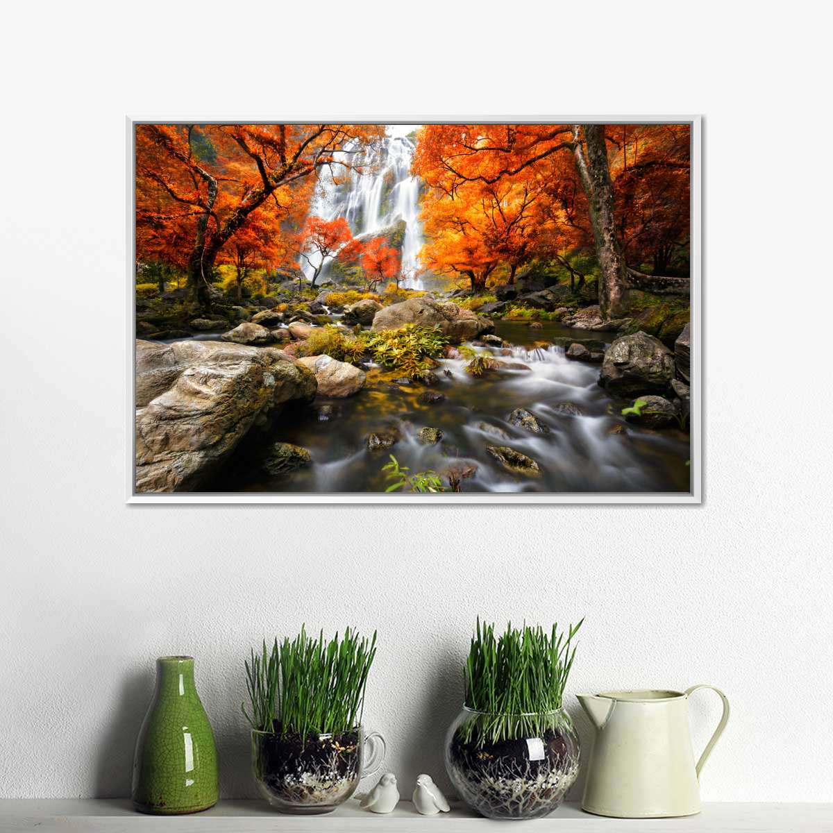 Stunning Autumn Waterfall Wall Art will refresh your mind and soul whenever you stop and stare at it. This high-quality art print will complement any room in your home and soothe your senses with nature's beauty.