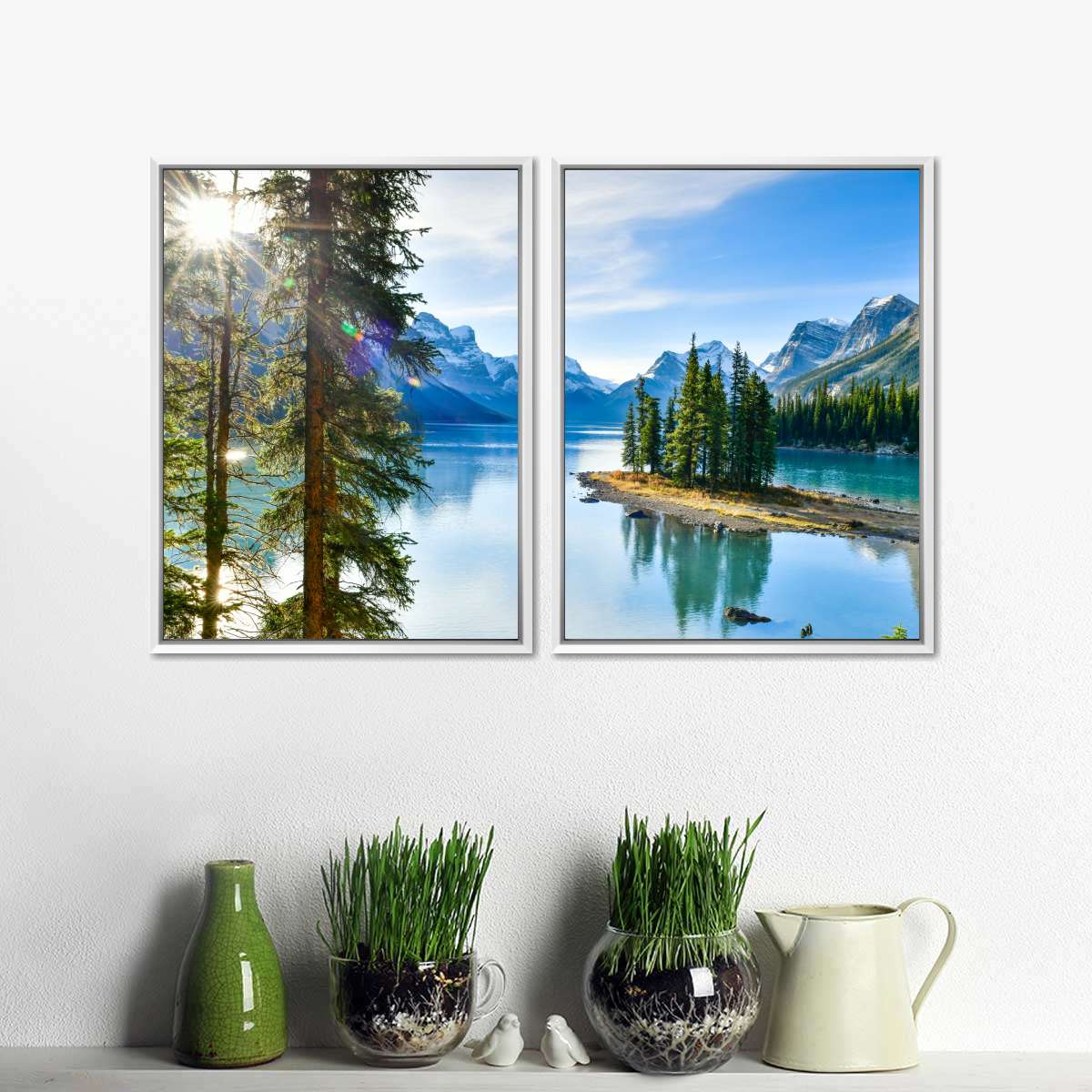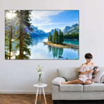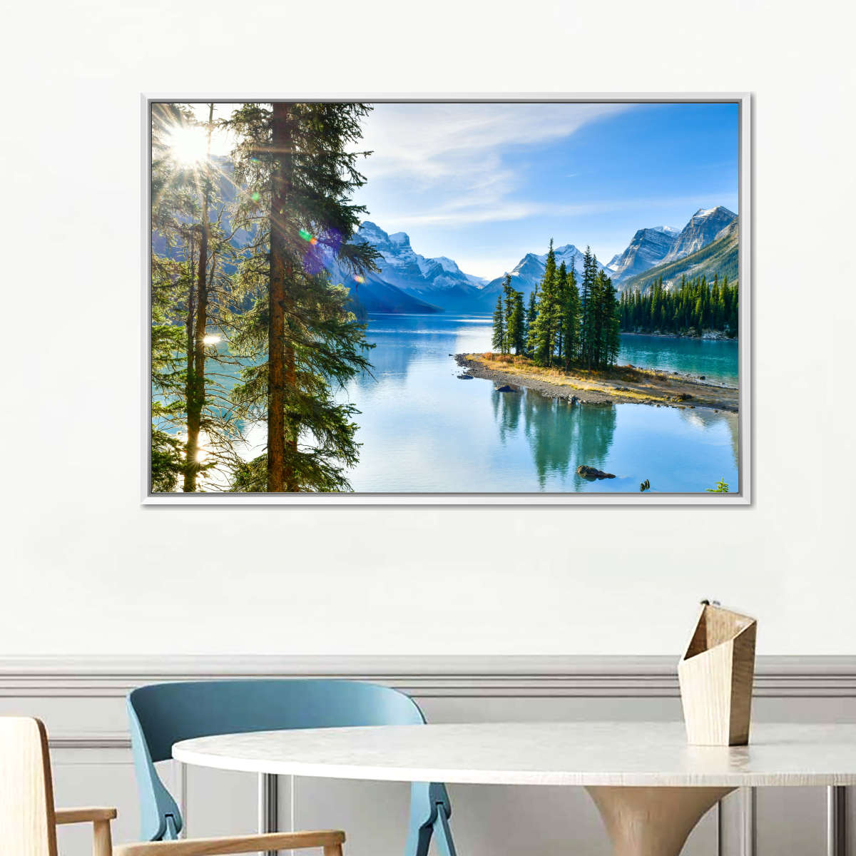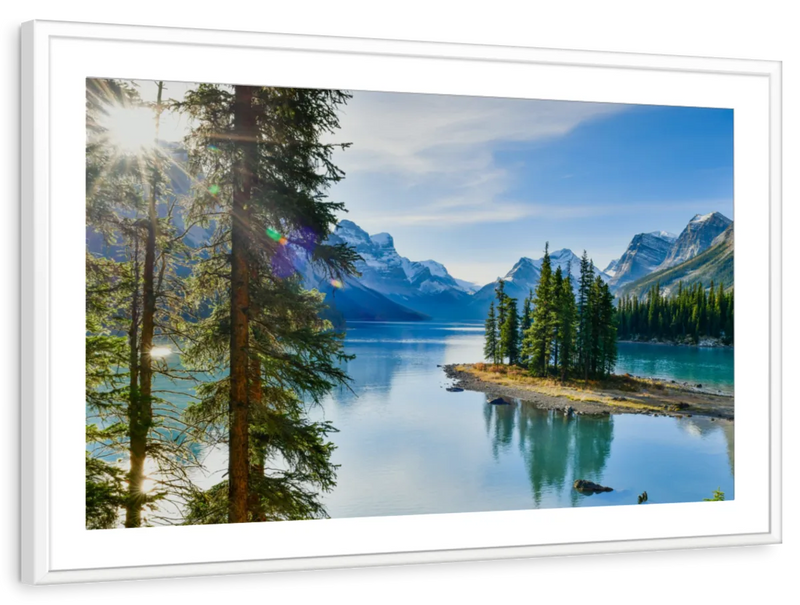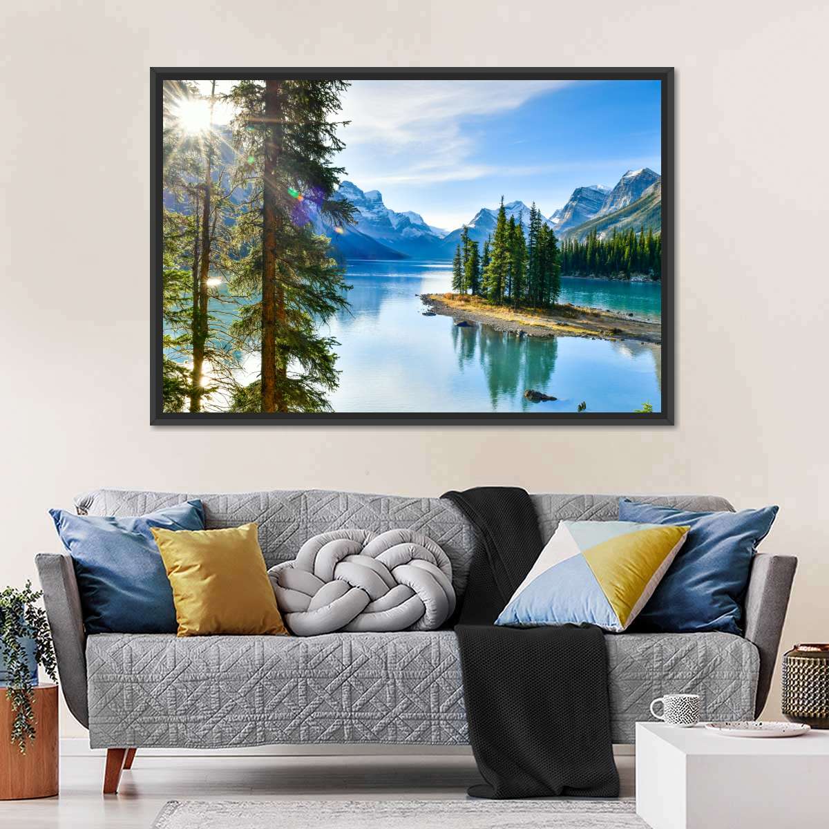 Sunny Maligne Lake Wall Art will refresh your mind and soul whenever you stop and stare at it. This high-quality art print will complement any room in your home and soothe your senses with nature's beauty.