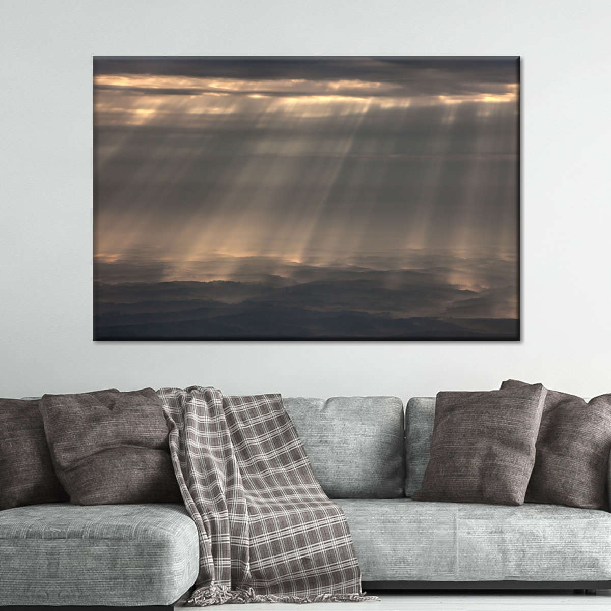 Sunrays And Cloudy Sky Wall Art is a bold addition to your decor. Welcome a sense of mystery and eeriness in your home in the form of this powerful, gothic art print.