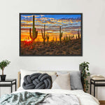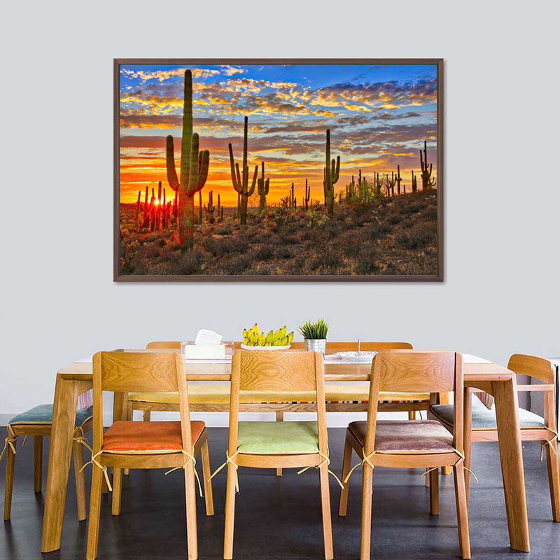 Sunset Cactus Wall Art will refresh your mind and soul whenever you stop and stare at it. This high-quality art print will complement any room in your home and soothe your senses with nature's beauty.