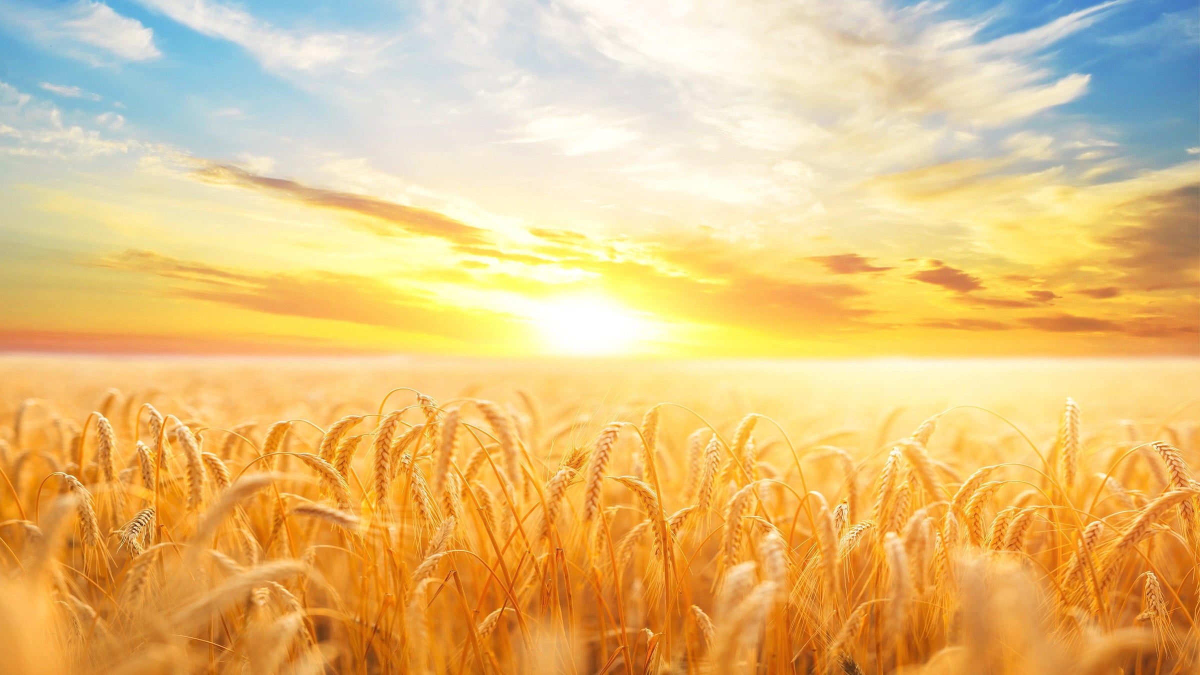Sunset Sunrise over Farmland Wheat Field Wall Mural. Peel and Stick Wall Paper. #6323