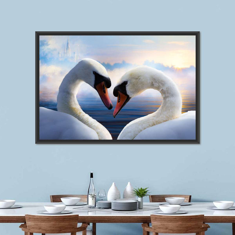 Swans In Love Canvas Wall Art will easily beautify any room. Bring this stunning art of your favorite animal into your home to set a positive tone to the entire space.