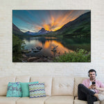 Swiftcurrent Lake At Dawn will refresh your mind and soul whenever you stop and stare at it. This high-quality art print will complement any room in your home and soothe your senses with nature's beauty.