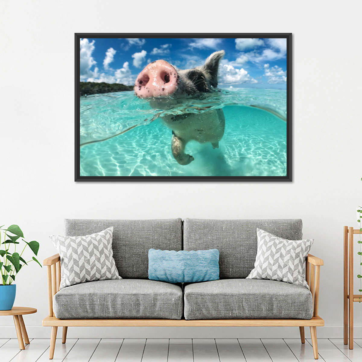 Swimming Pig Wall Art will easily beautify any room. Bring this stunning art of your favorite animal into your home to set a positive tone to the entire space.