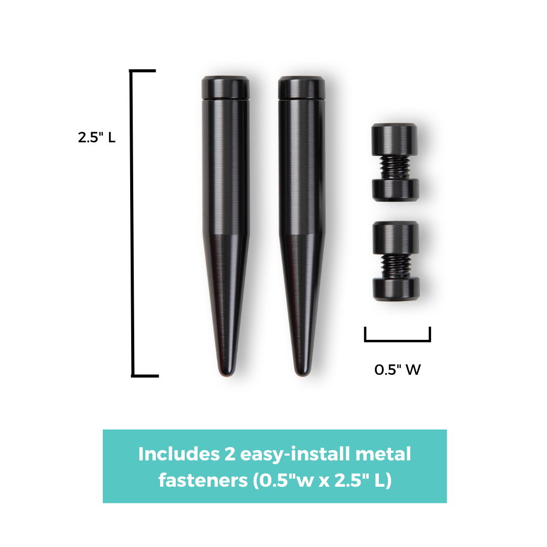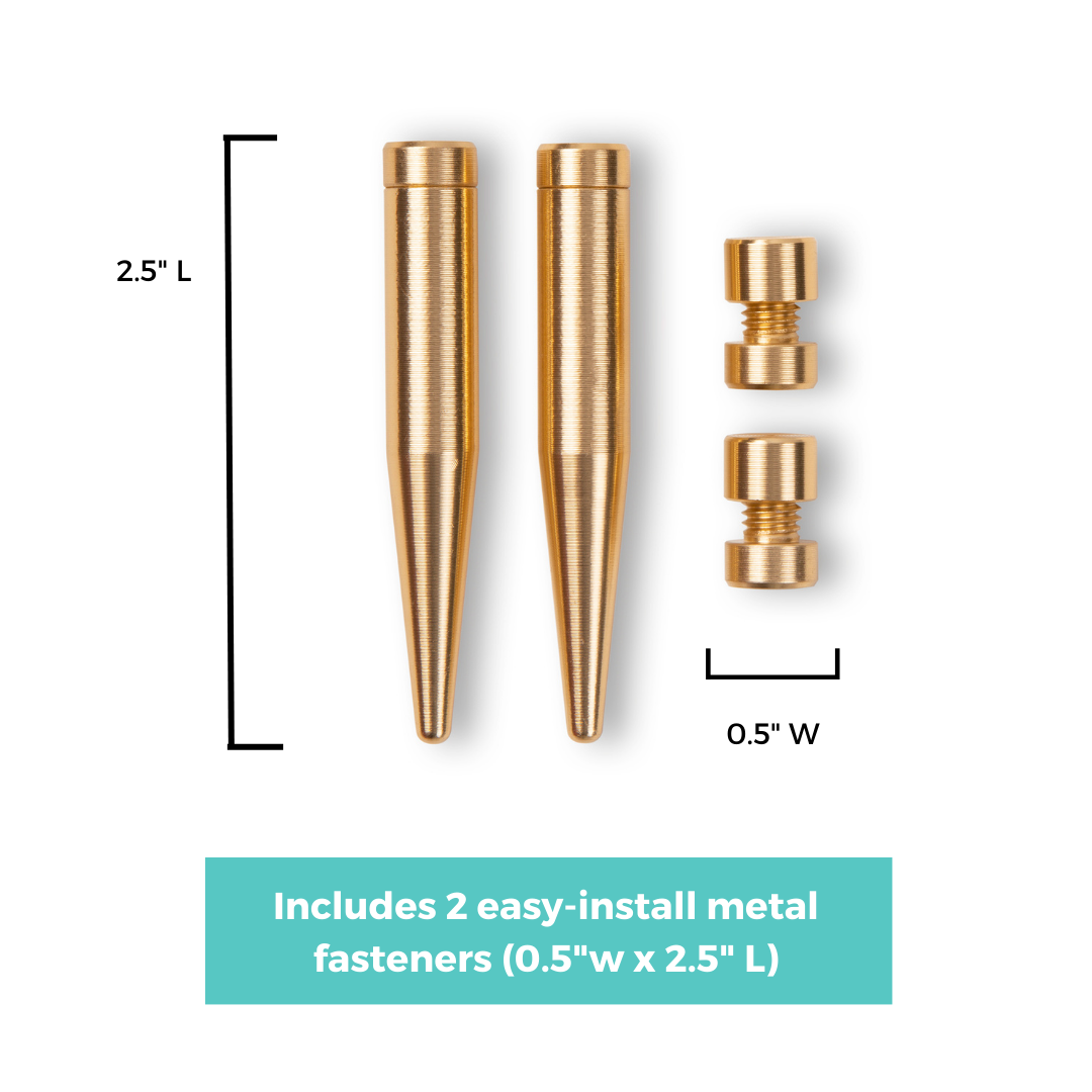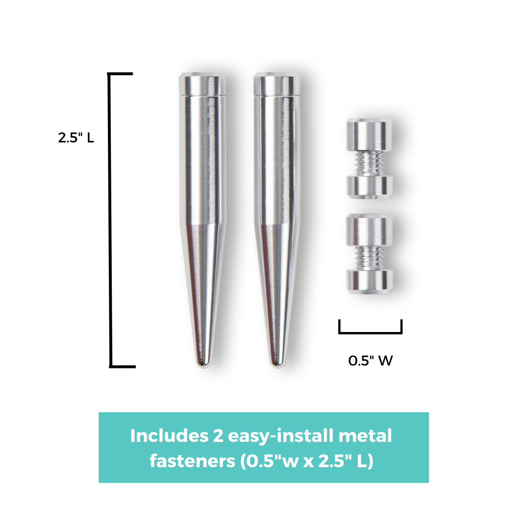 - Two 0.5" diameter metal fasteners and two 2.5" long metal stands. (Silver, Gold, or Graphite)