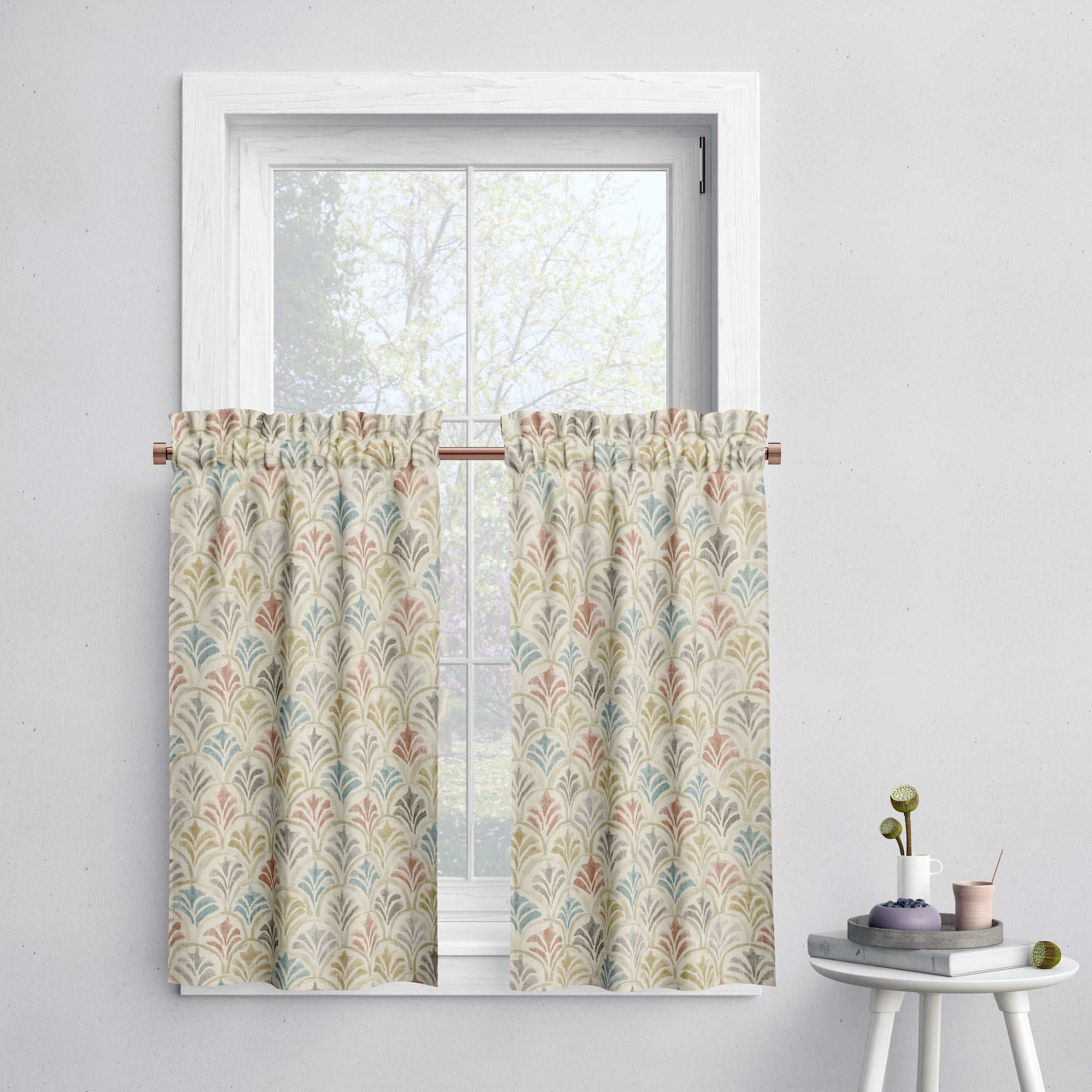 Tailored Tier Cafe Curtain Panels Pair in Countess Tuscan Scallop Watercolor- Blue, Terracotta, Gray, Tan