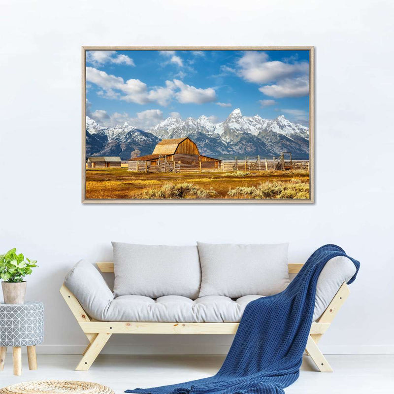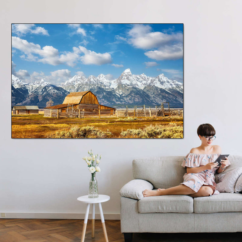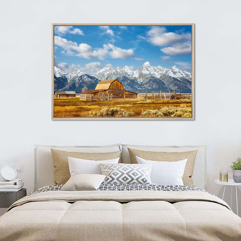 Teton Range Moulton Barn Wall Art will refresh your mind and soul whenever you stop and stare at it. This high-quality art print will complement any room in your home and soothe your senses with nature's beauty.