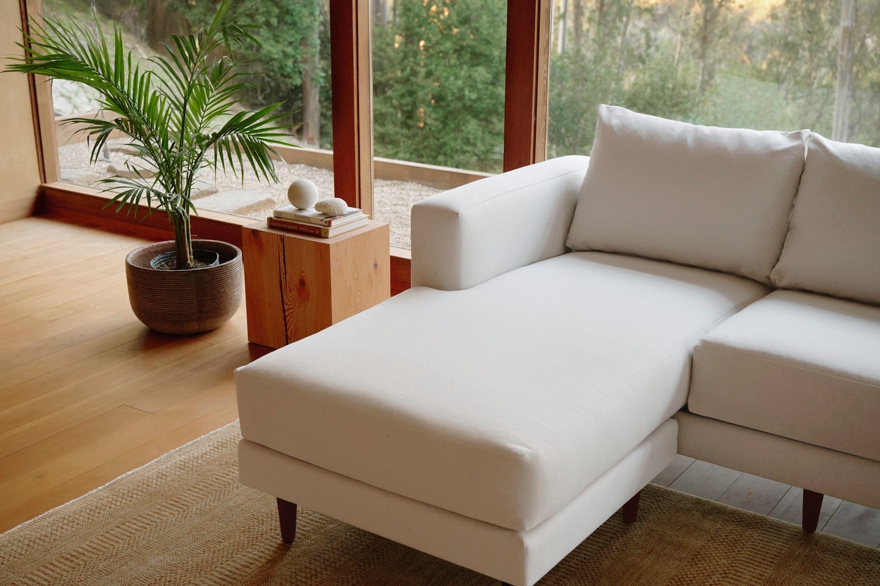 The pitch and proportions of a luxury sofa — for maximum comfort. Wide arms that invite lounging and perching alike. All the beauty and comfort of our sofa, with legroom to spare. Convertible chaise extension can be set up on either side.
