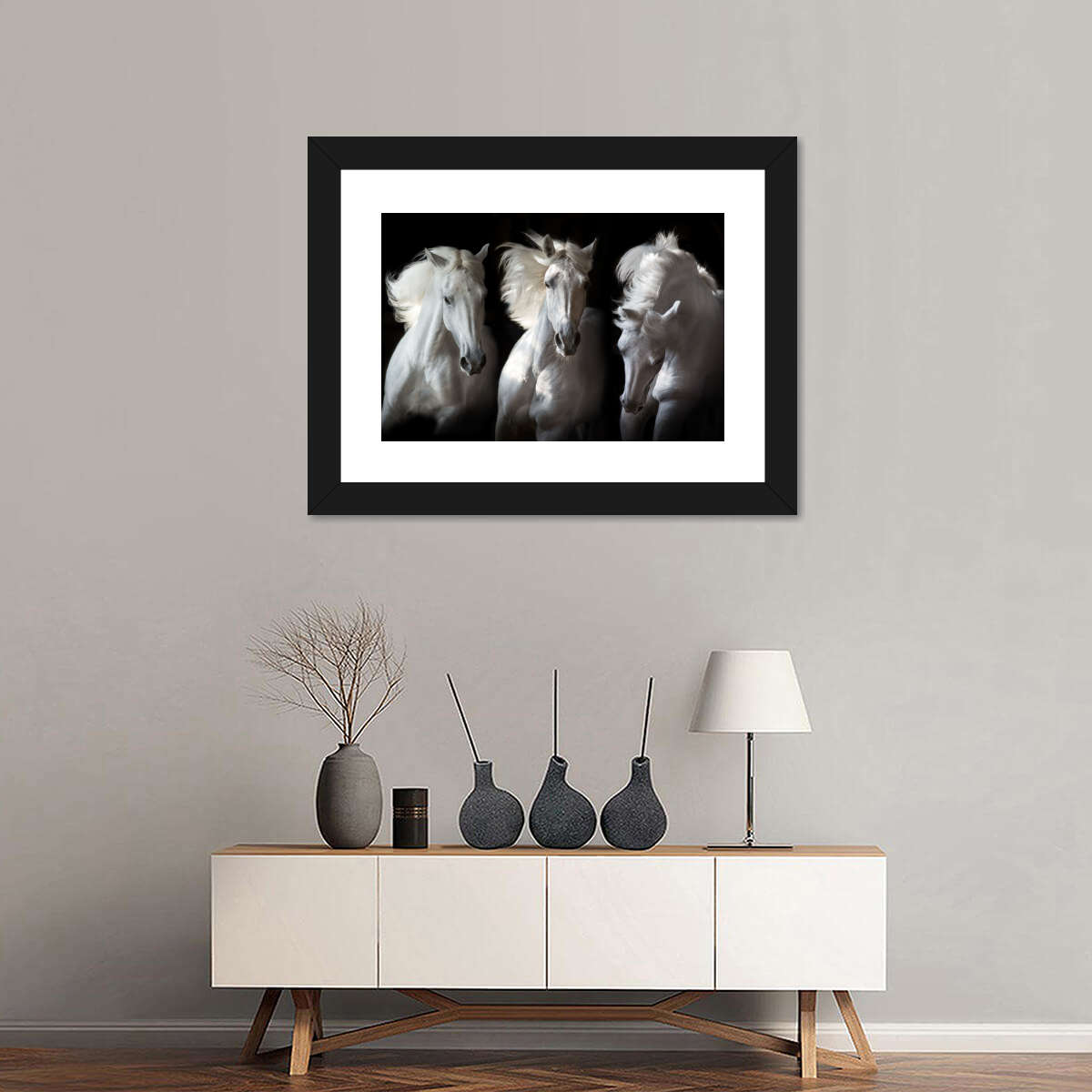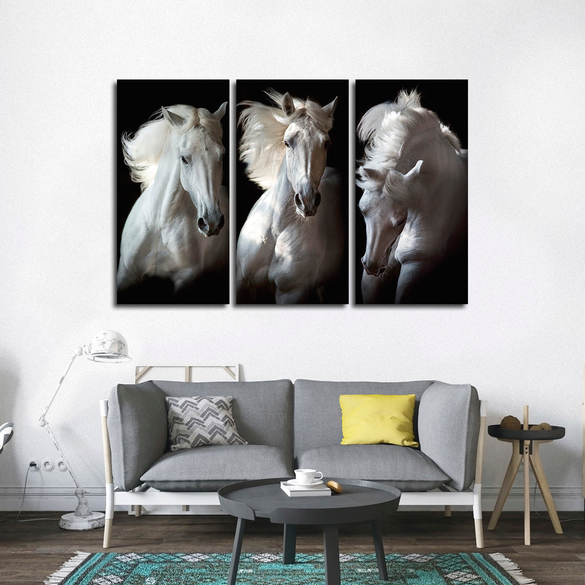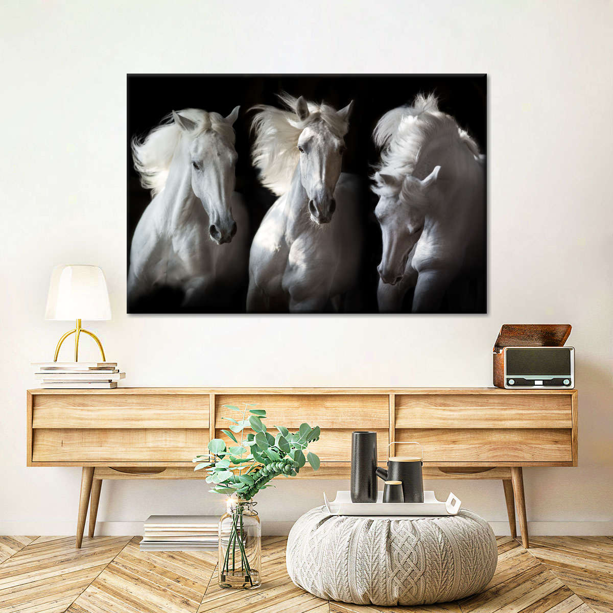 Three White Horses Wall Art
