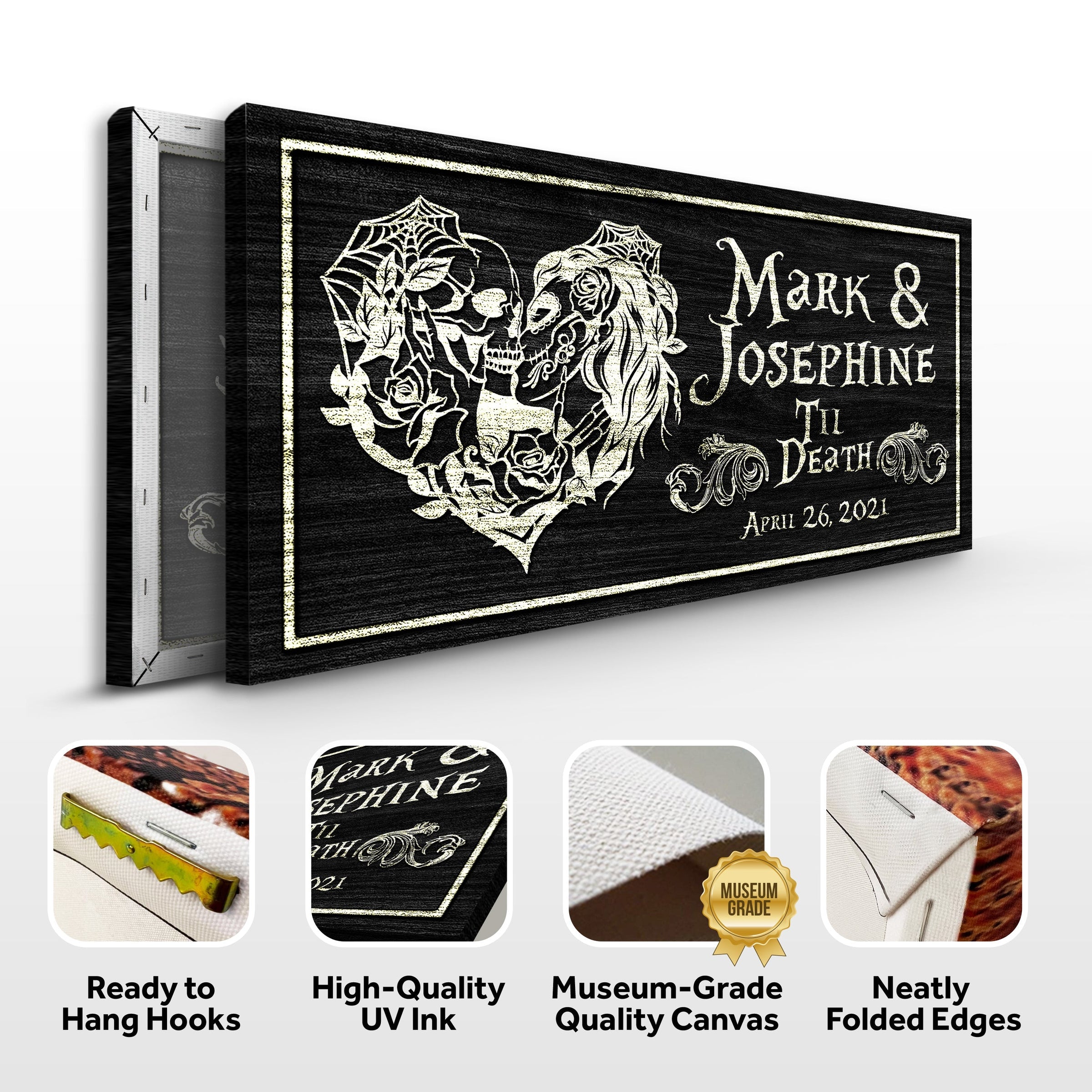 Celebrate your undying affection with this "Till Death Do Us Part" sign— a perfect blend of gothic art and heartfelt symbolism, and a memorable customized anniversary gift that says love lasts a lifetime, and beyond.