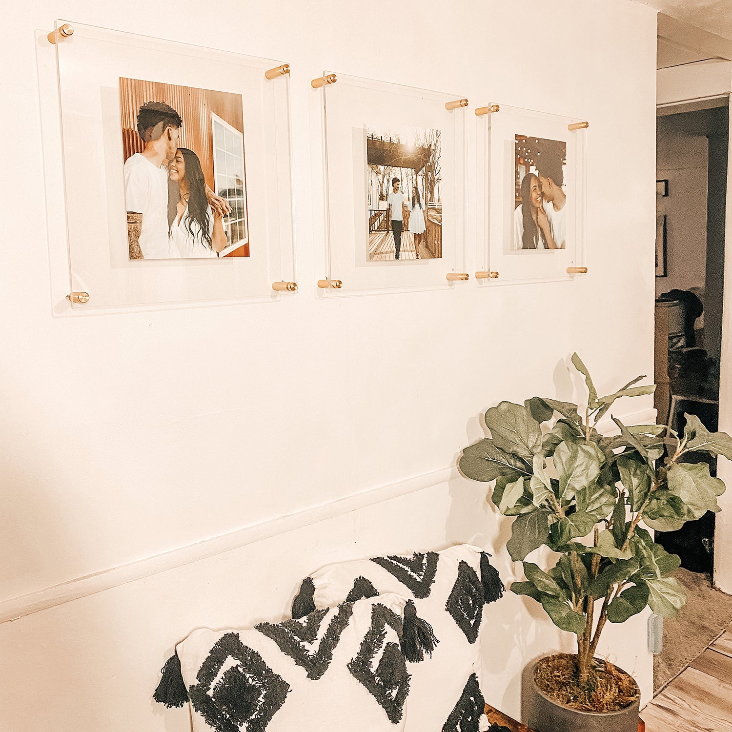 A sleek set of three 15"x15" frames elevate the design of any space. Perfect for photos, and any art around 12"x12".