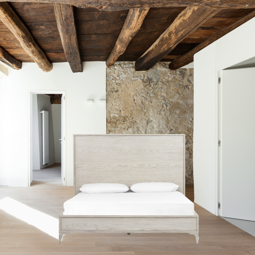 Finished in a beautifully light vintage white this Viggo Bed is a low, clean-lined oak bed featuring inset panel detailing on head and foot boards plus side rails, for an elegant, angular look for any bedroom.